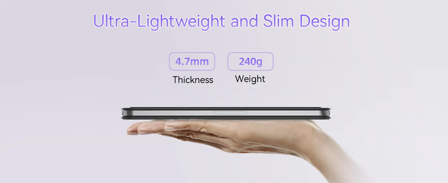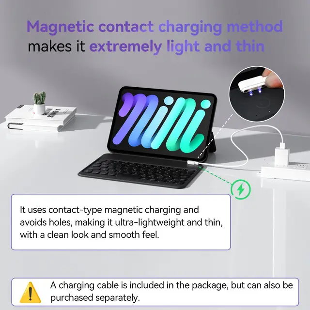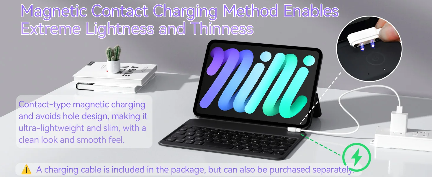 - 𝗦𝗹𝗶𝗺 𝗮𝗻𝗱 𝗟𝗶𝗴𝗵𝘁𝘄𝗲𝗶𝗴𝗵𝘁 𝗗𝗲𝘀𝗶𝗴𝗻:This folio type keyboard case for iPad Mini weighs only 240g and boasts a folding double-sided thickness of 8mm, with the keyboard part just 5mm thick. The keyboard case for iPad Mini 6/7 with a magnetic charging method ensures a slimmer profile and a comfortable experience, making it your perfect companion in the office, at home, cafes, and during travels, without the burden of extra weight.
