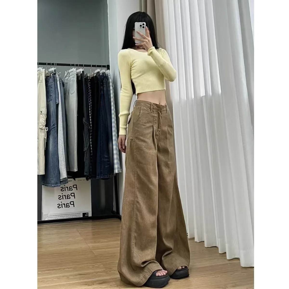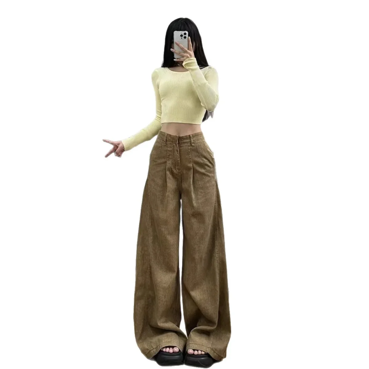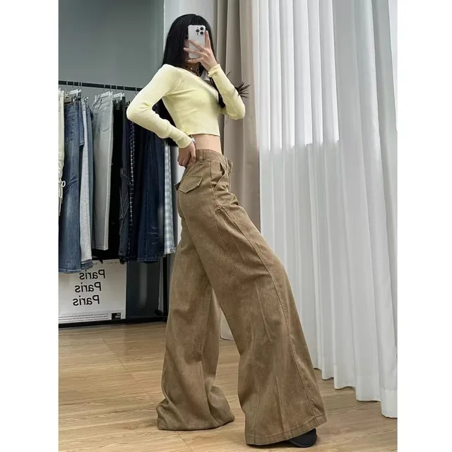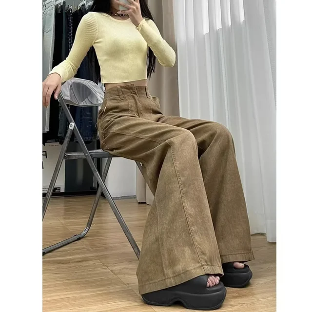 • High Waist Design : The high waist design of these khaki wide leg jeans accentuates your silhouette, providing a flattering fit for any body type.