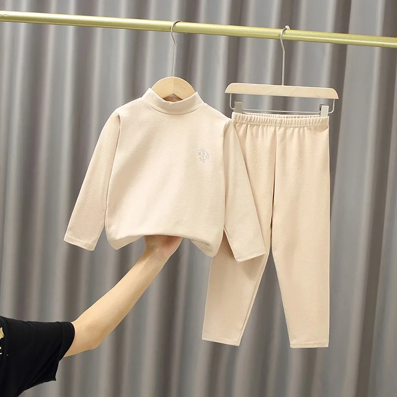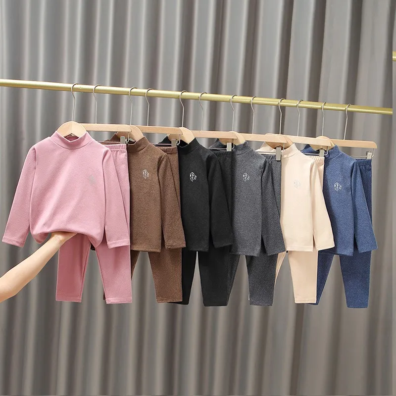 Kid Girls Clothing Set Thermal Underwear Suit Autumn Boys Pajama Soft Fabric Sleepwear Candy Colors Solid Clothes For 3-14 Years