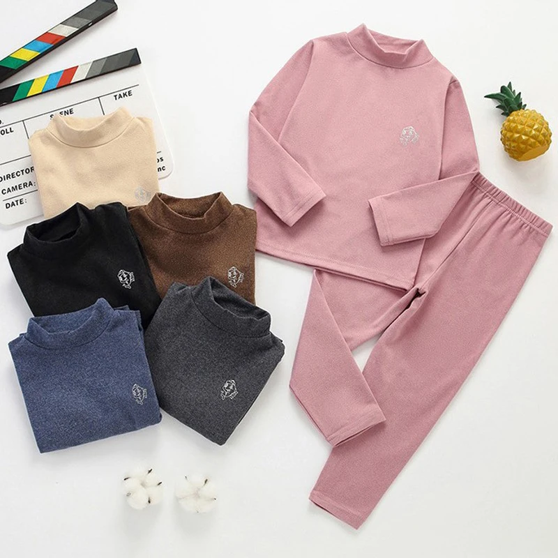 Kid Girls Clothing Set Thermal Underwear Suit Autumn Boys Pajama Soft Fabric Sleepwear Candy Colors Solid