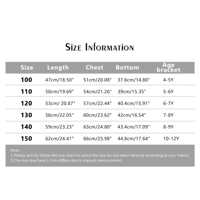 100—-47cm/18.50″—51cm/20.08″—37.6cm/14.80″—4-5Y