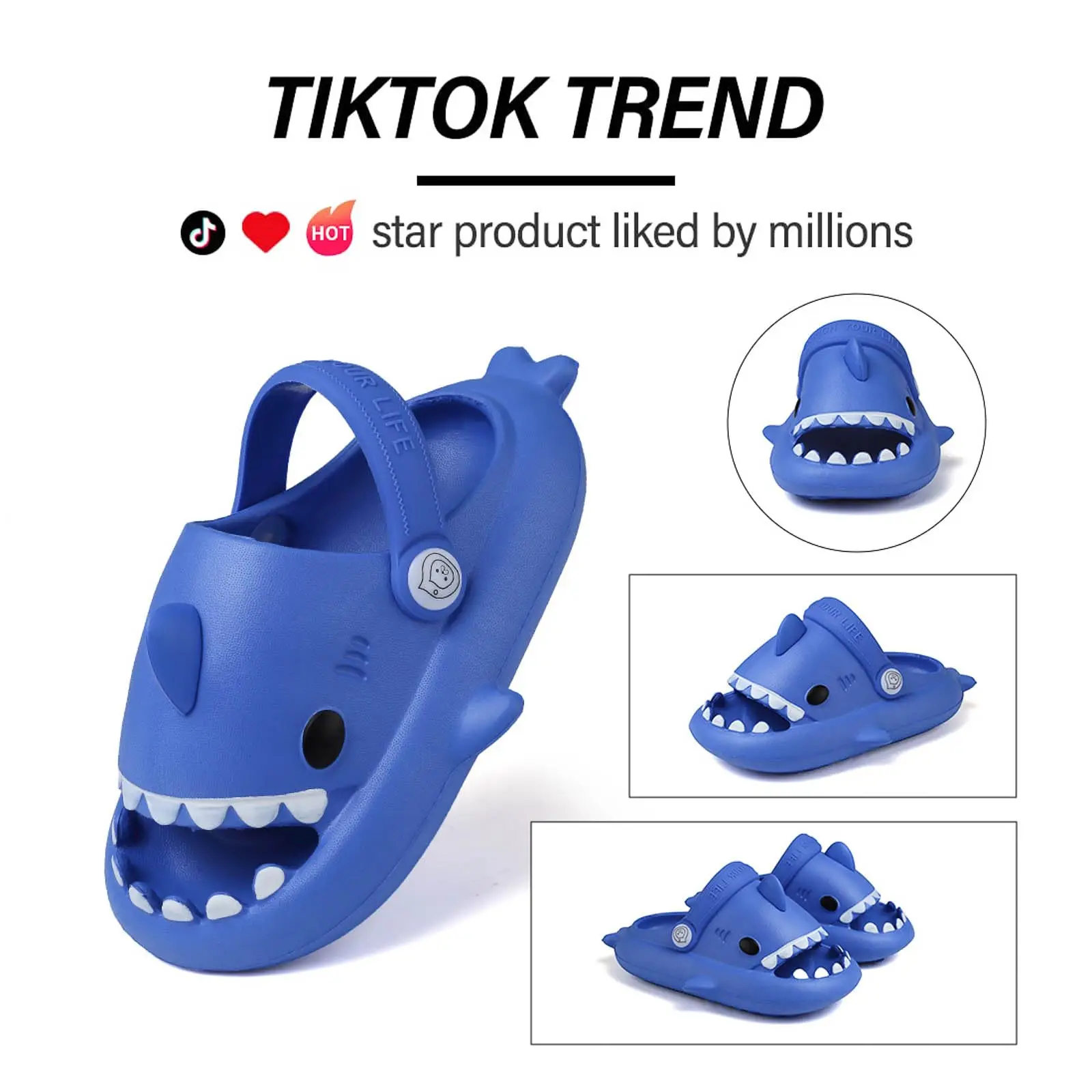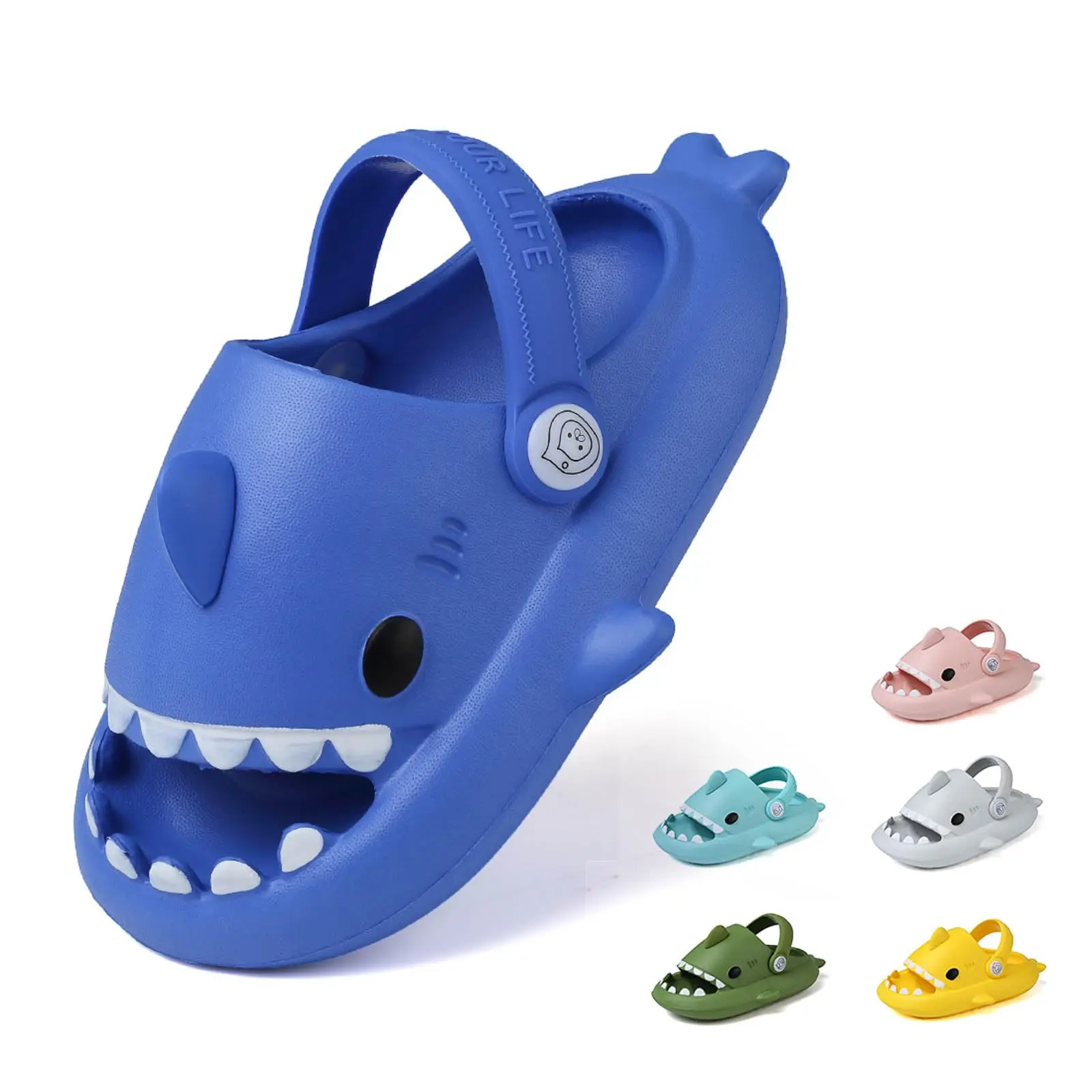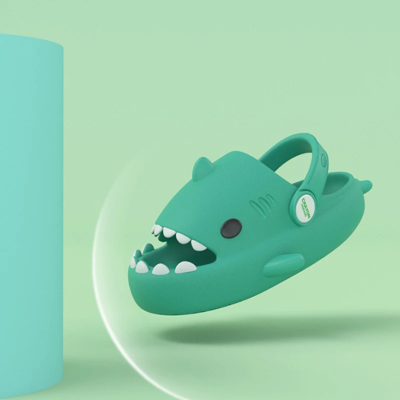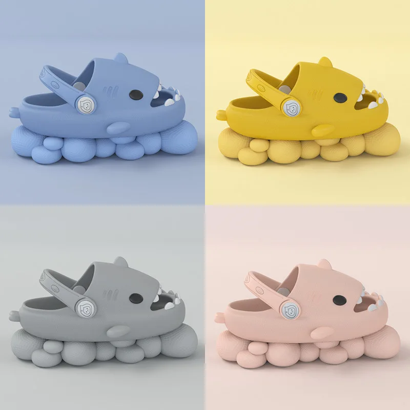 KIDMI Boys Girl Shark Slides Non-Slip Open Toe Cloud Sandals Cute Comfy Cushioned Thick Sole Slippers Cartoon Shower Slippers