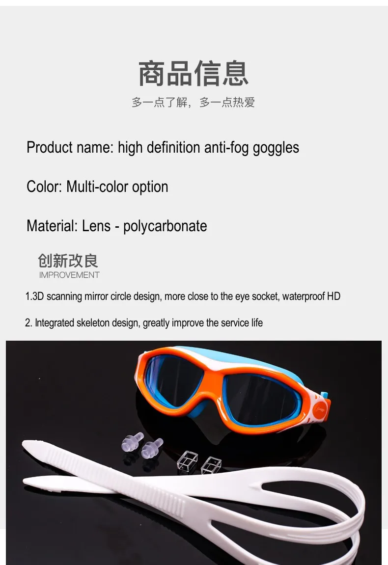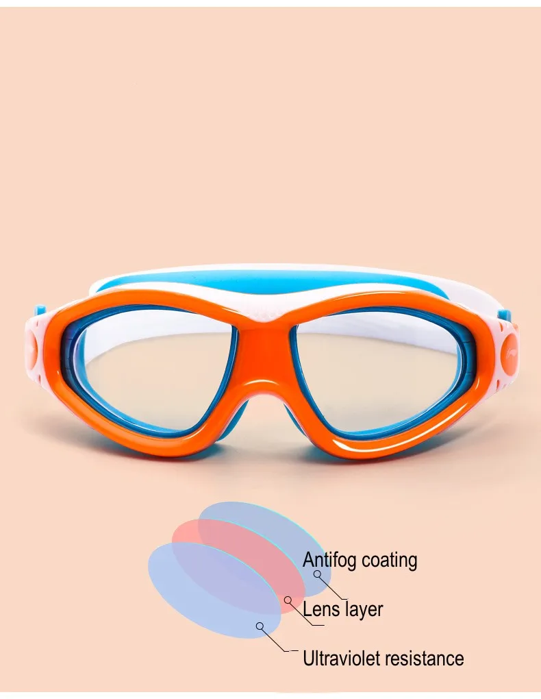 LINING Kids Anti-Fog UV Protection Waterproof Adjustable Silicone Swim Goggles+Caps Professional Sports Diving Eyewear Glasses