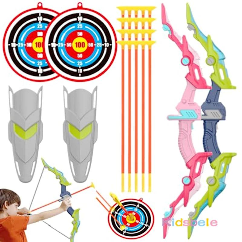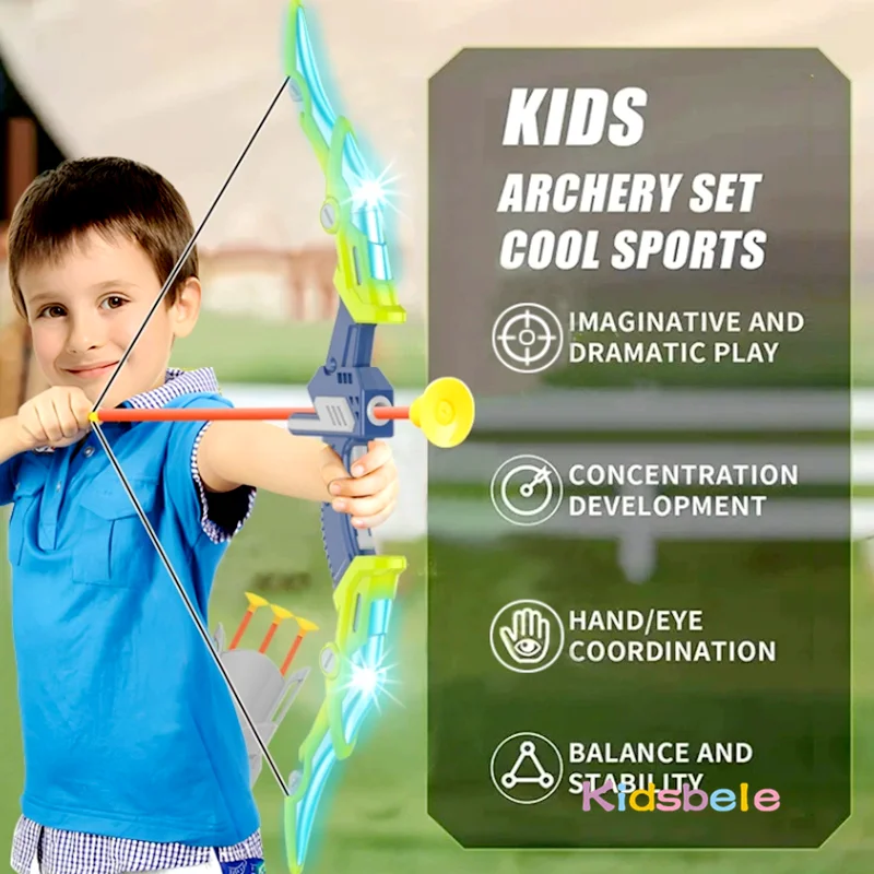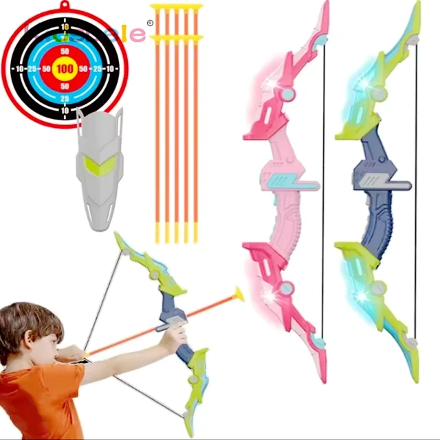 Kids Archery Set with LED Light Up Bow & Arrow Target & Shield Hunting Shooting Toy for Boys Girls Summer Outdoor Sports Game 6+