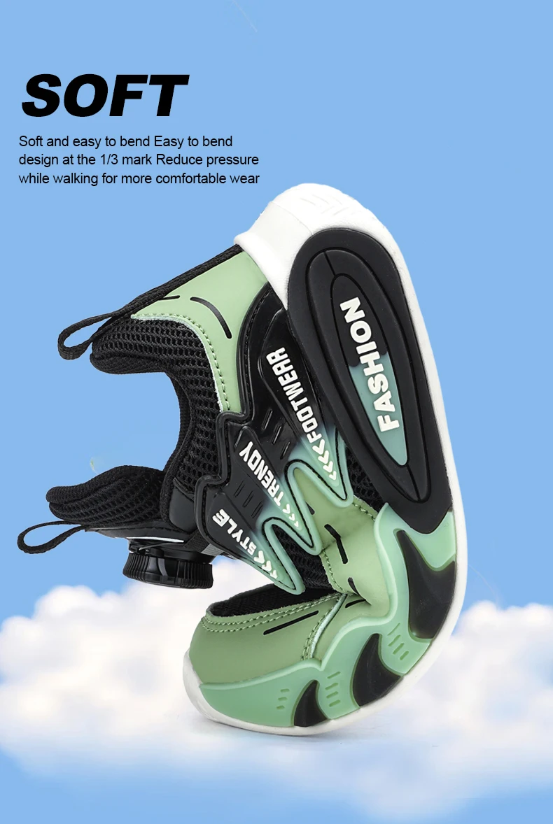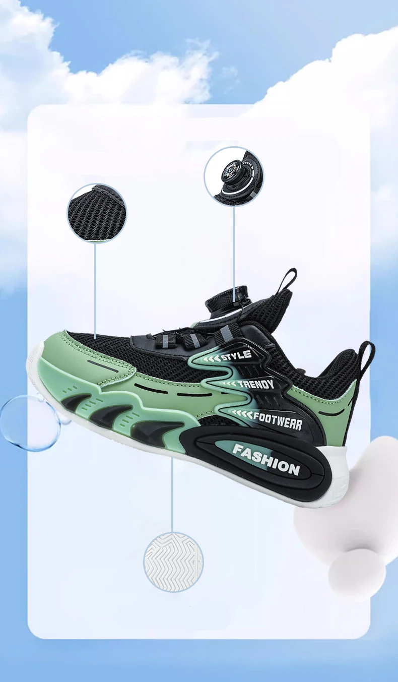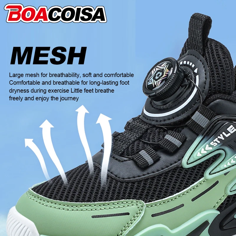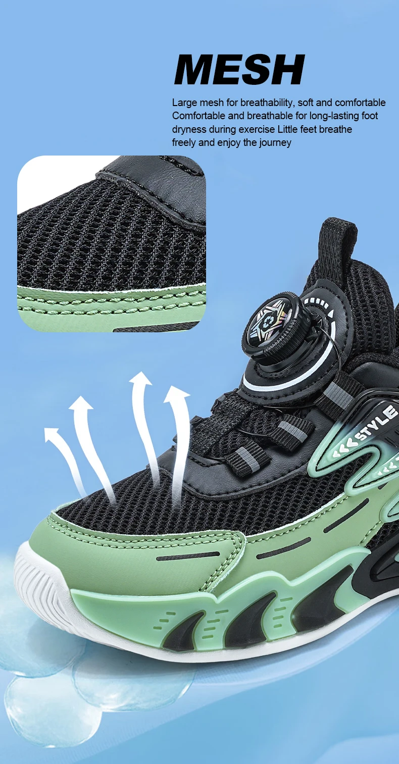 The Kids Casual Mesh Shoes feature a breathable mesh upper, ensuring your child’s feet stay cool and dry during active play.