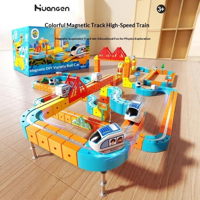 Kids Educational Electric Magnetic High – Speed Train Magic Track Cube, Diy Magnetic Assembly Toy