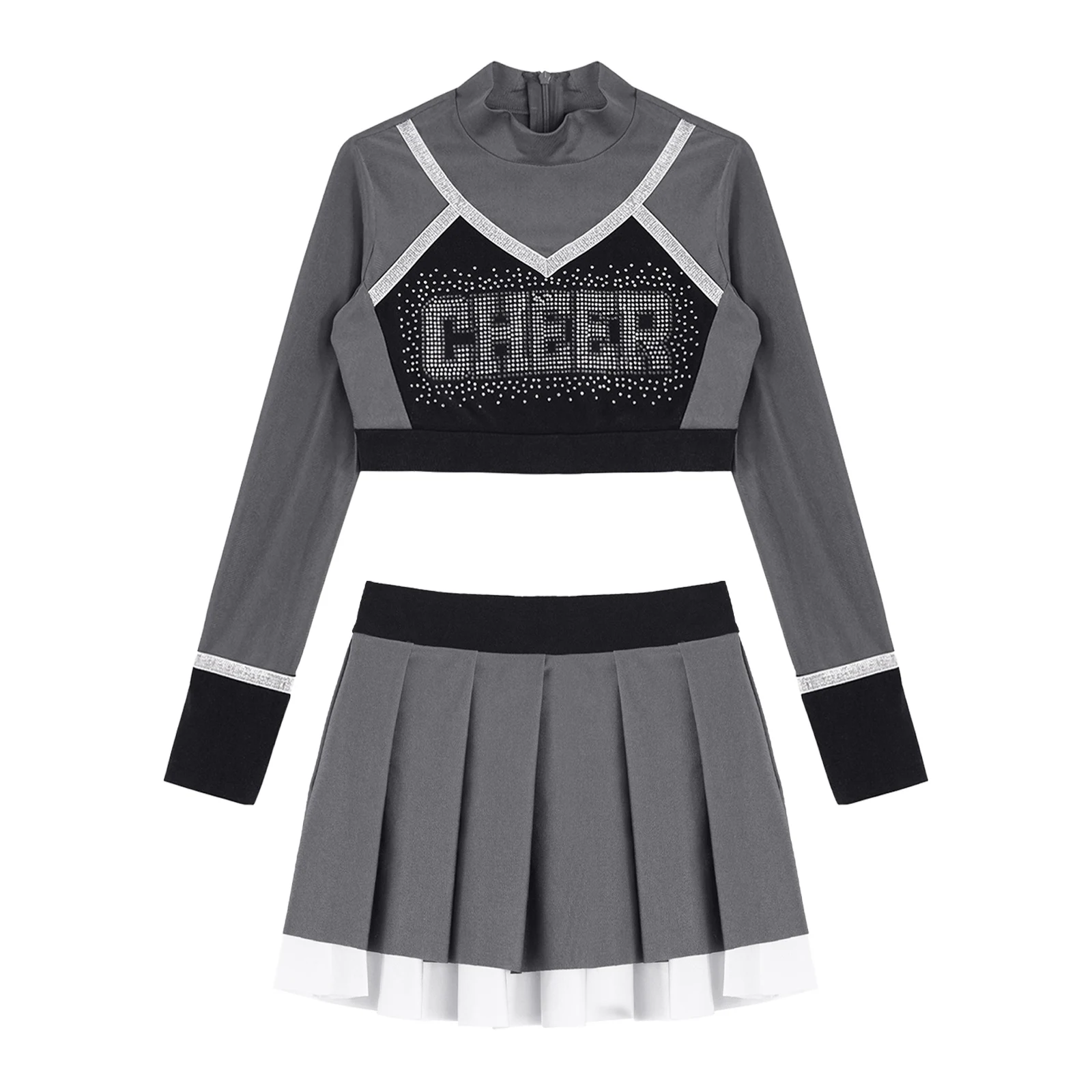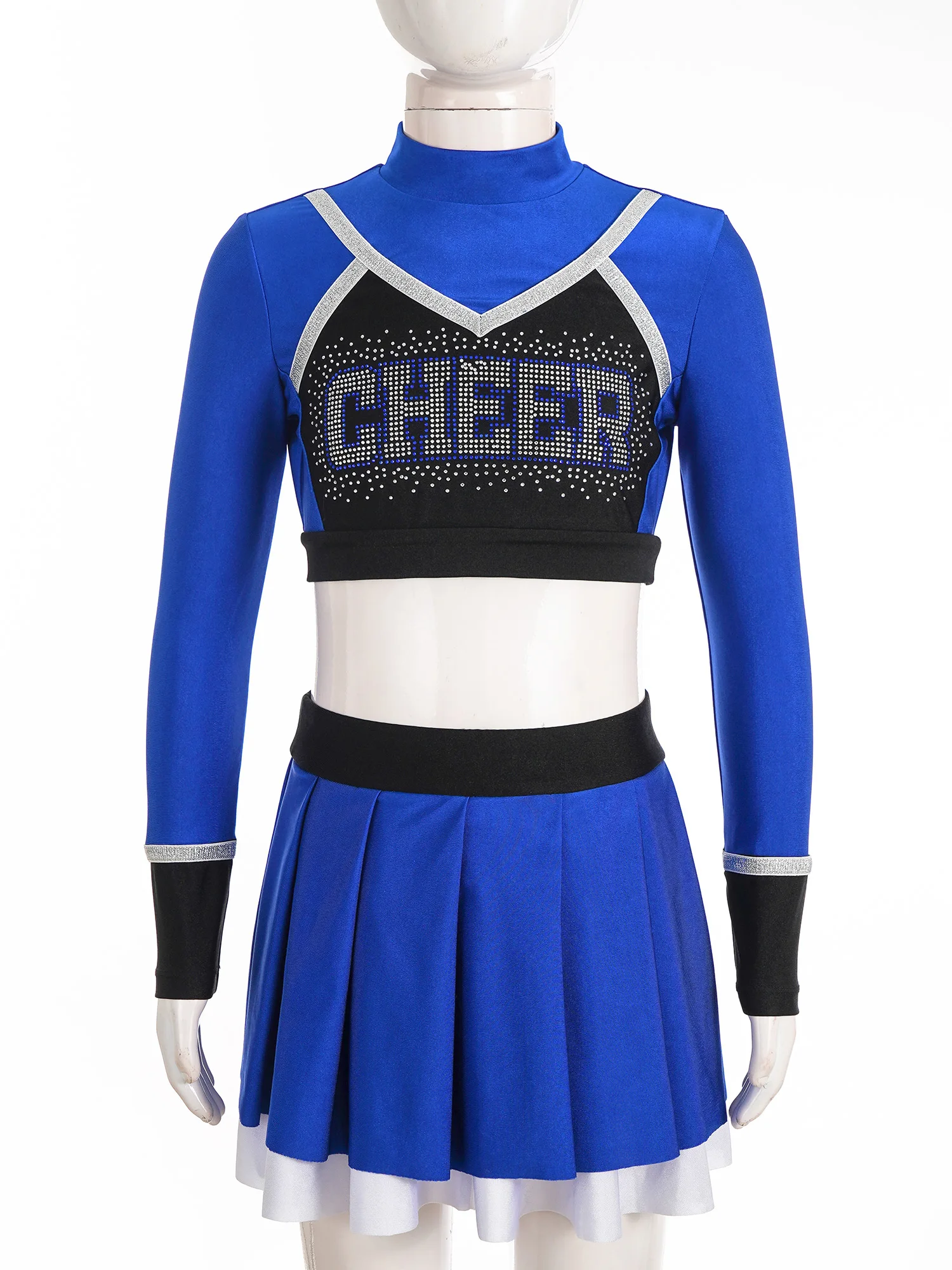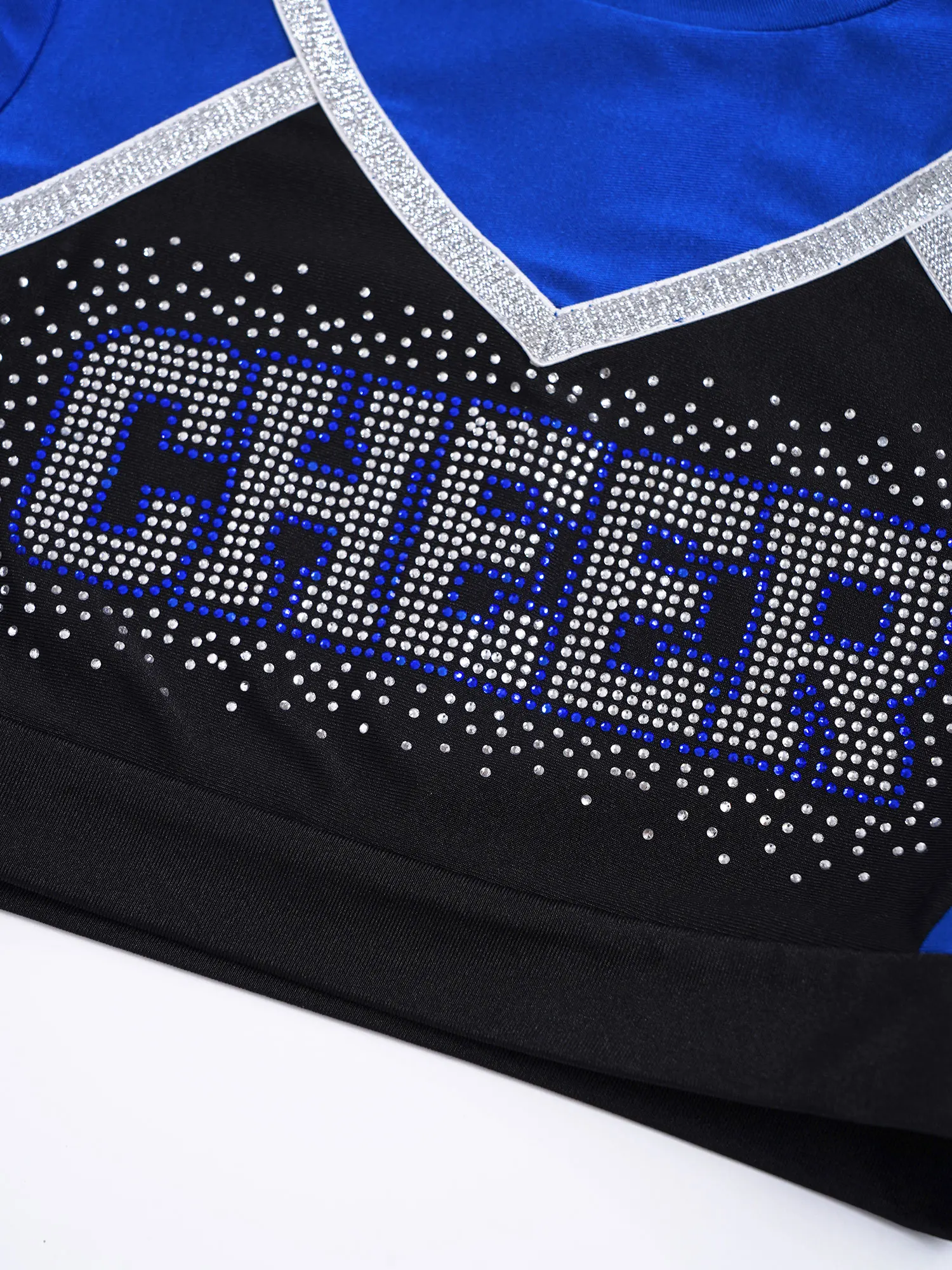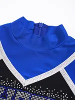 Girl’s cheerleading dance tops with glittery rhinestones letter pattern makes your child eye-catching in the crowd.