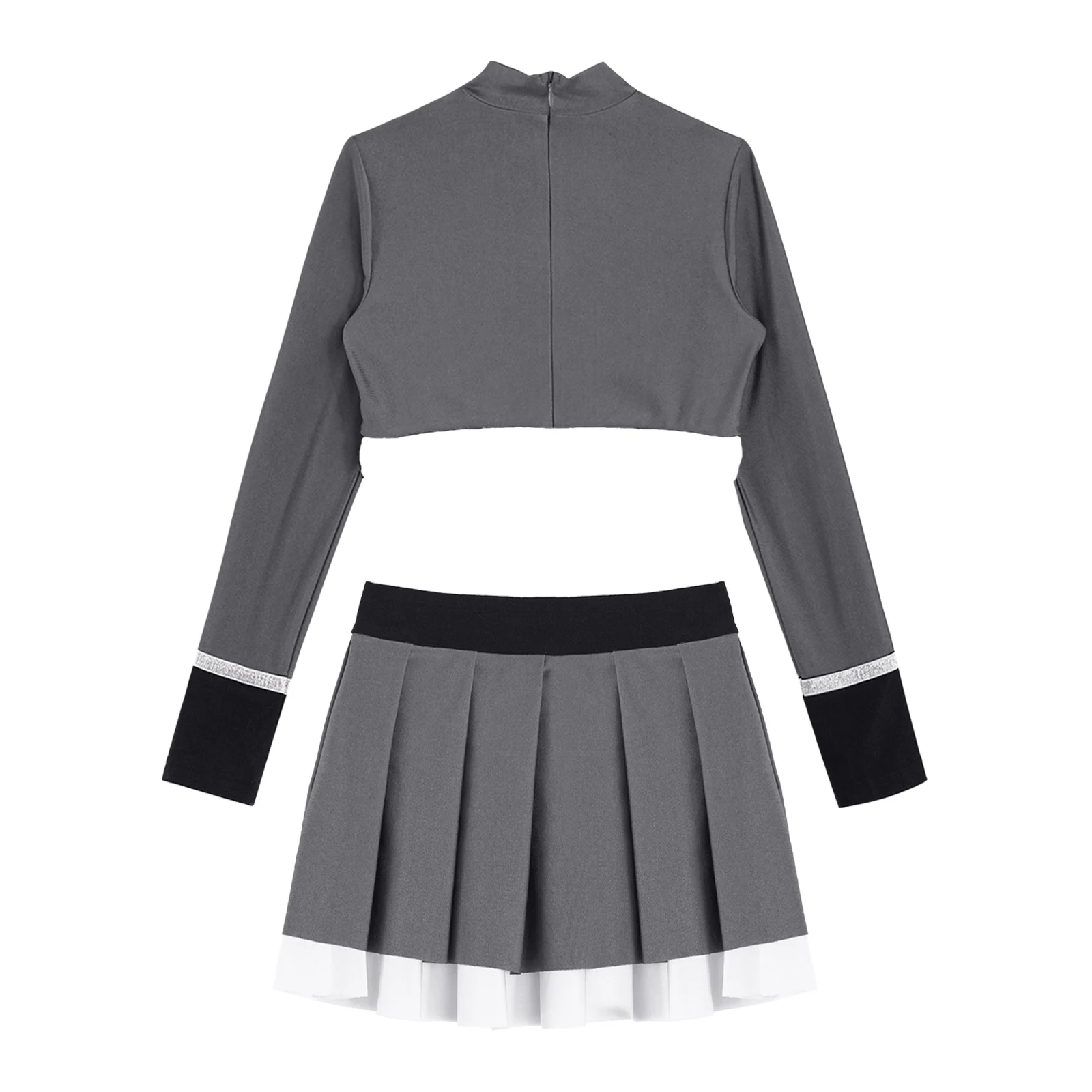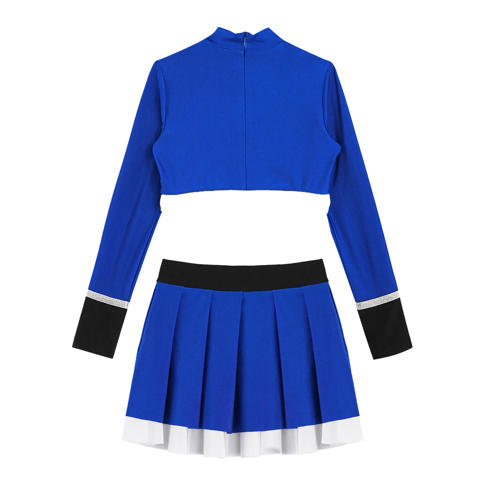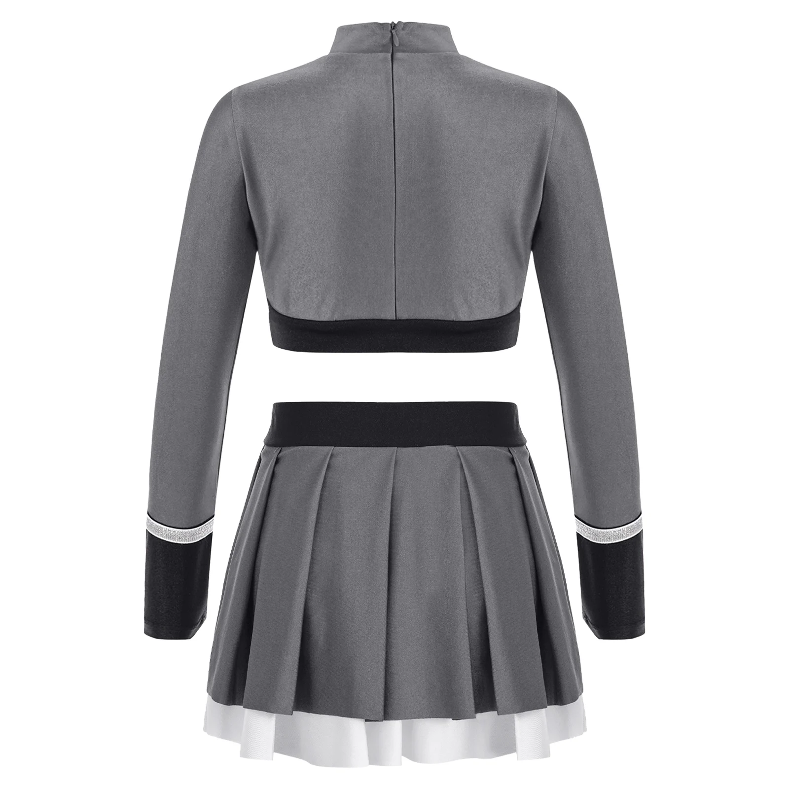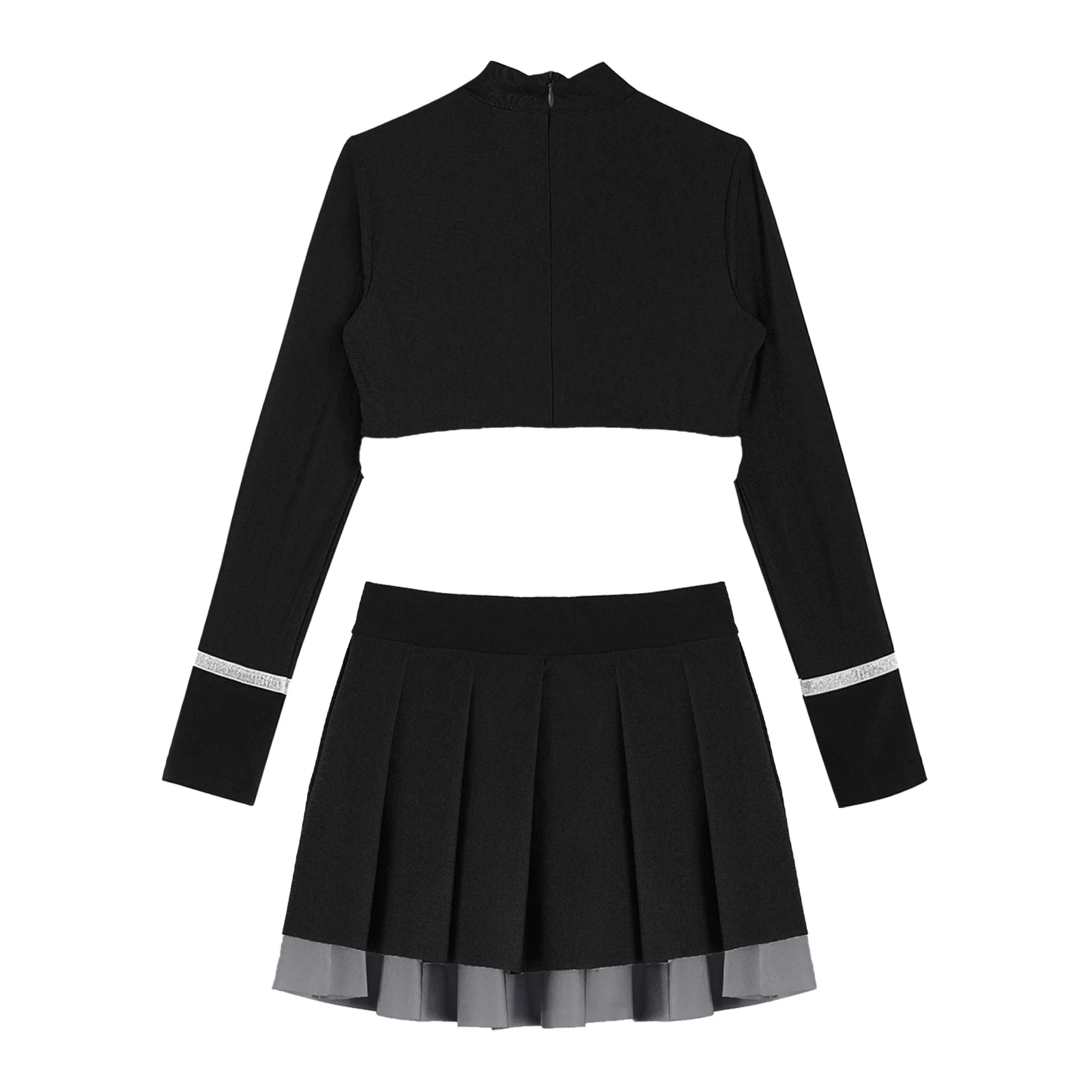 Girl’s cheerleading dance tops with glittery rhinestones letter pattern makes your child eye-catching in the crowd.