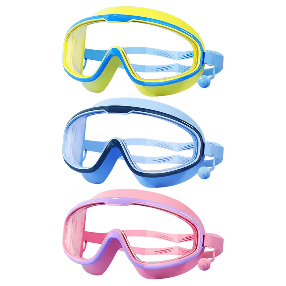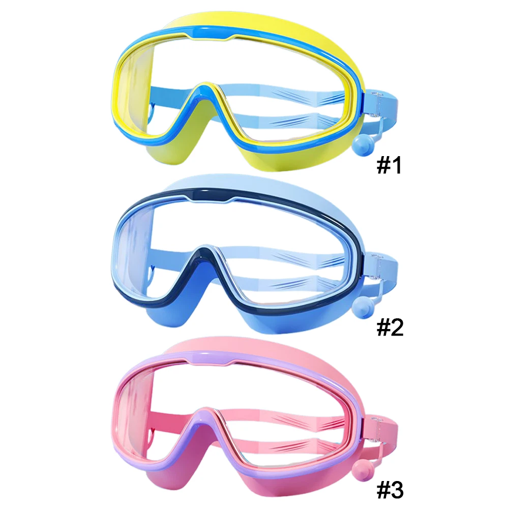 Kids Swim Goggles HD Swim Glasses with Earplugs UV Protection Swimming Goggles Large Frame Swim Sports