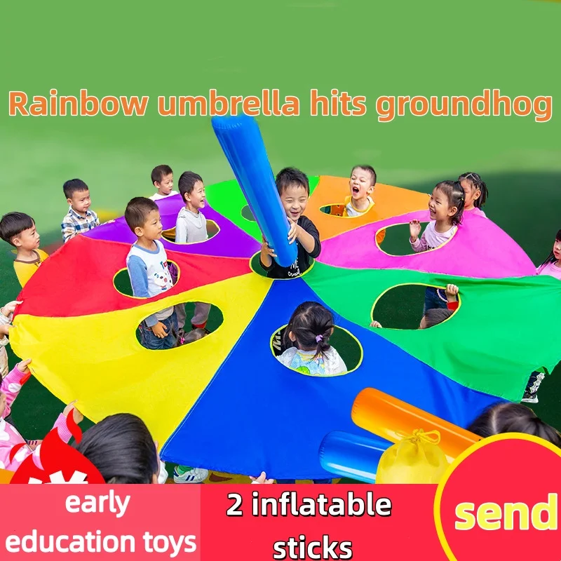 Multi Person Interaction Outdoor Toy Whack-a-mole Rainbow Umbrella Parachute Game Rainbow Umbrella Parachute Children 1. Improve Cooperation: Umbrella parachute mole game will bring endless fun for kids of all ages, effectively promoting group cooperation.