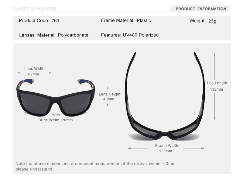 | Accessories | Glasses Case, Clean cloth, Cloth bag, Polarizied text card |
