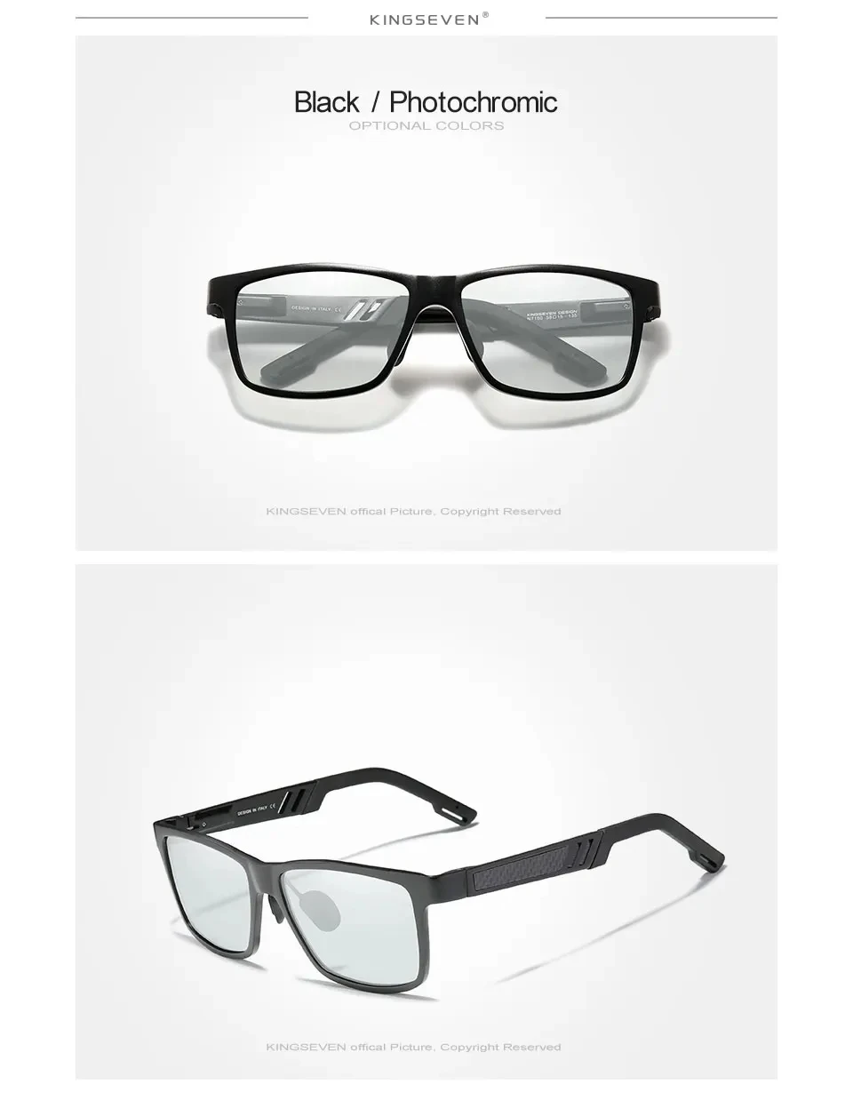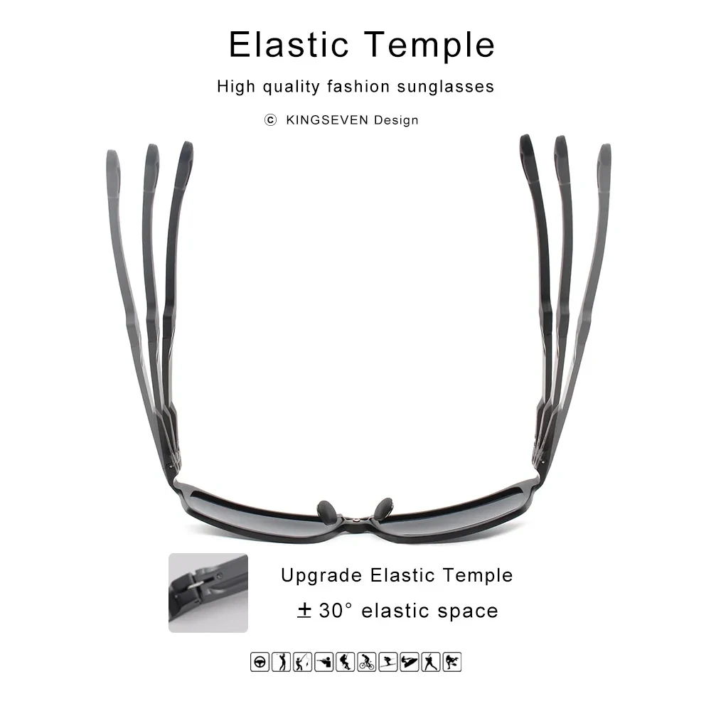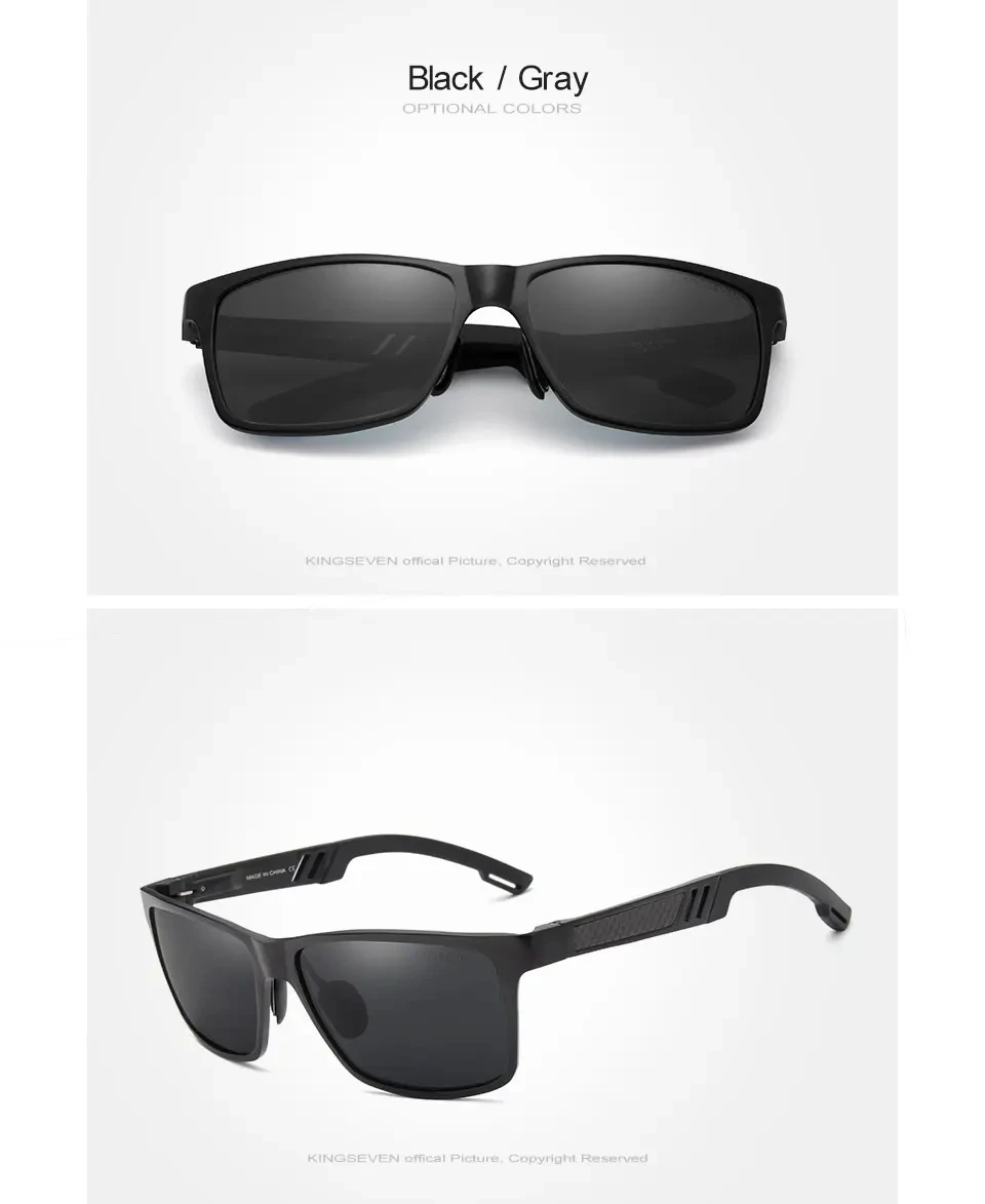 KINGSEVEN Men Polarized Sunglasses Aluminum Magnesium Driving UV400 Glasses Rectangle Shades Eye Protection