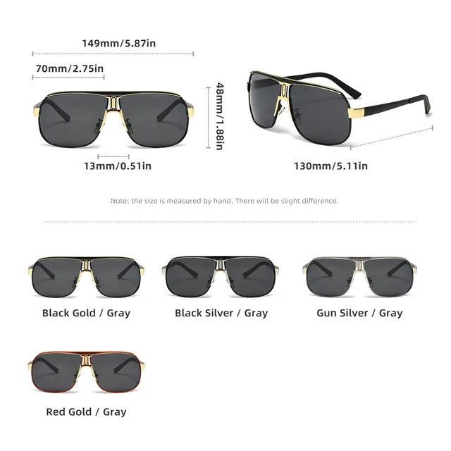KINGSEVEN Men Women Polarized Alloy Square Oversized Frame Sunglasses Driving Sun Glasses Shades Oculos