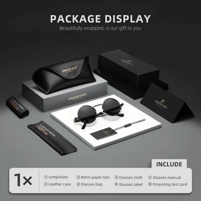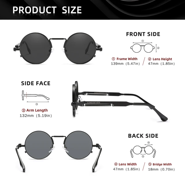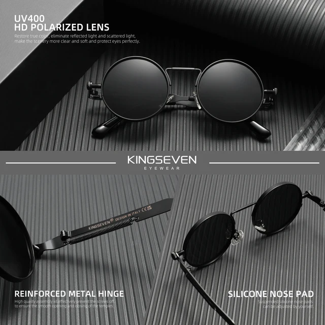 KINGSEVEN Original Designe Sunglasses Gothic Punk Polarized Men UV400 Glasses Women Round Frame Retro