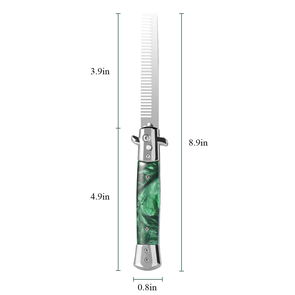 This spring comb can help you to make a fashion hair style. Resin handle is durable, smooth and comfortable to use. Wide comb teeth will not hurt your scalp and will making your hair smooth and glossy. Simple switch button is easy to operate. Portable size and fordable design is convenient to carry.
