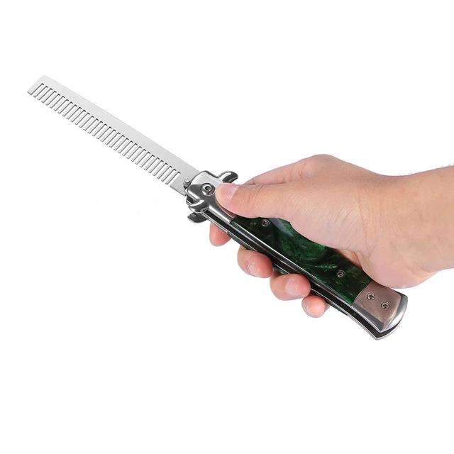 3Colors Stainless Steel Switchblade Spring Pocket Oil Hair Comb Foldable Hairstyling Brush