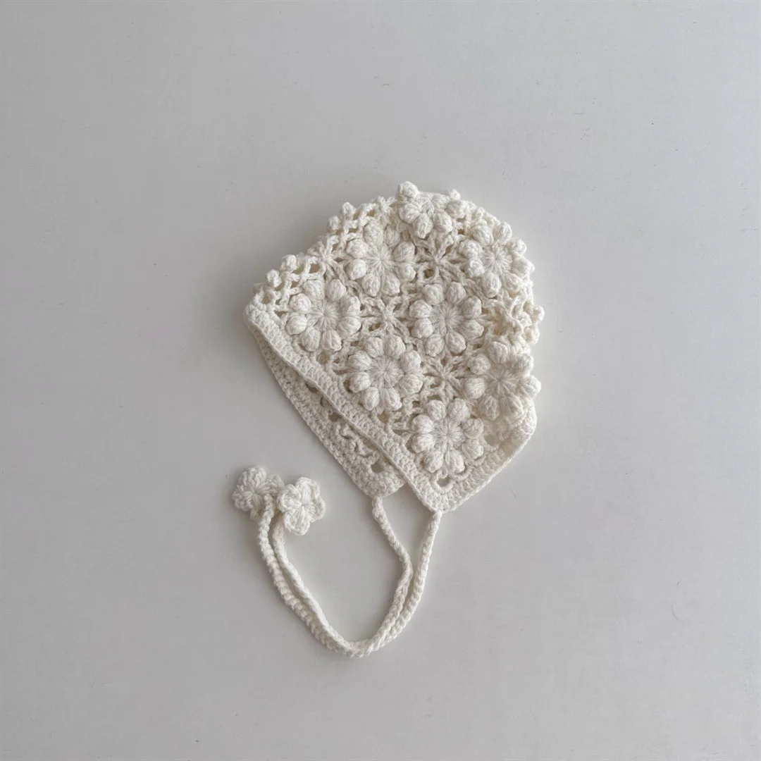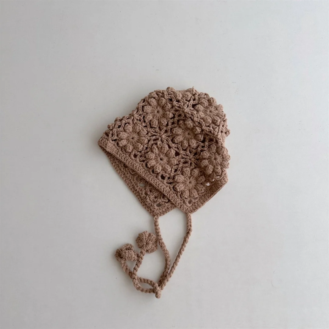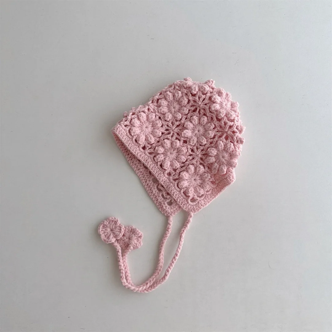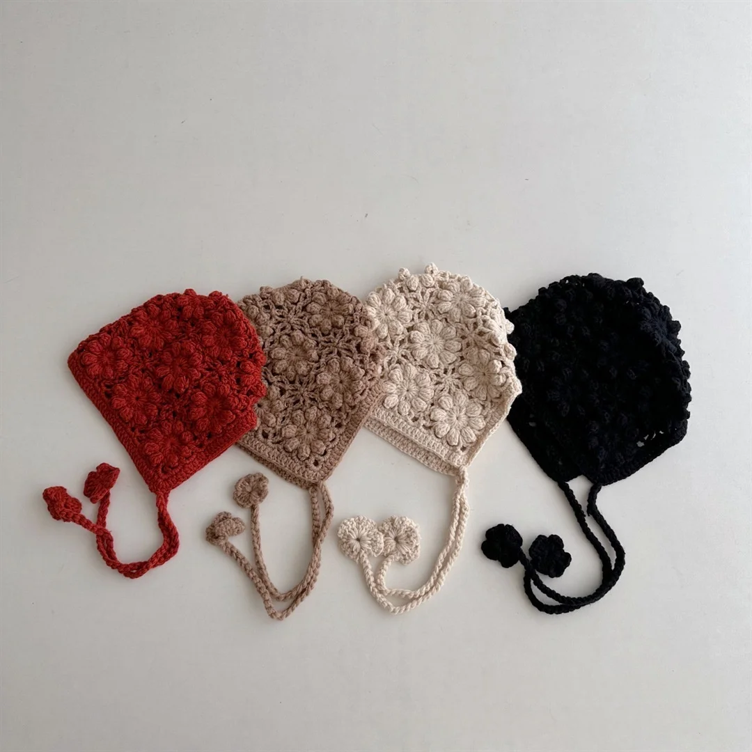 Knitted Baby Hat Kids Girls Handmade Crochet Ear Flap Beanie Cute Hollow Out Warm Spring Headwear Fashion