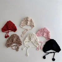 Knitted Baby Hat Kids Girls Handmade Crochet Ear Flap Beanie Cute Hollow Out Warm Spring Headwear Fashion Ear Protection Cap