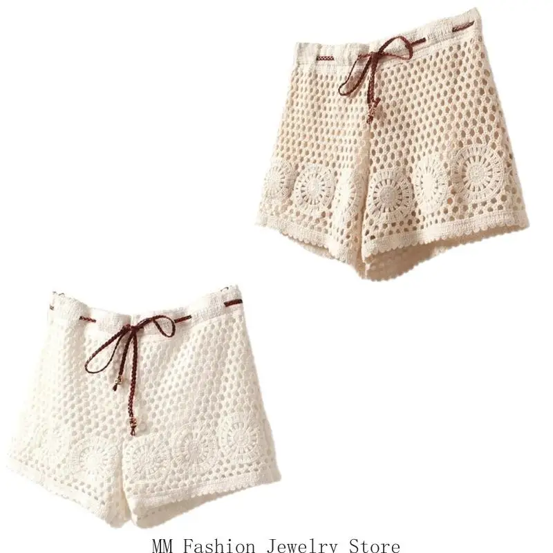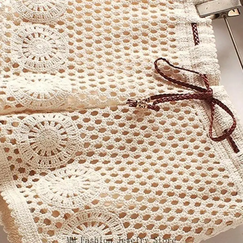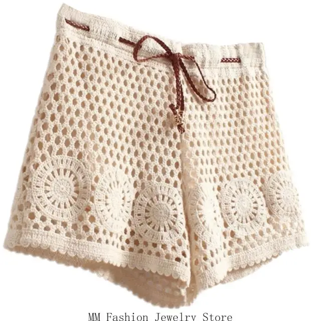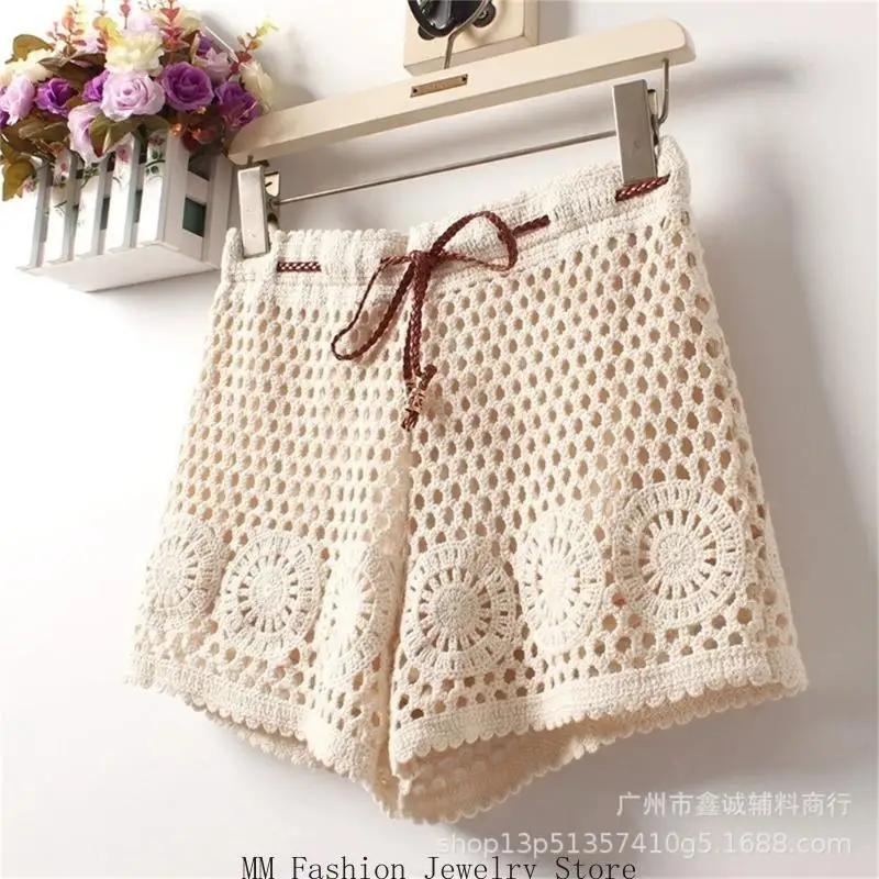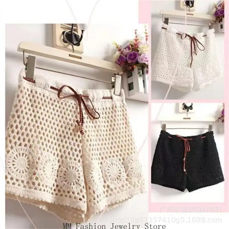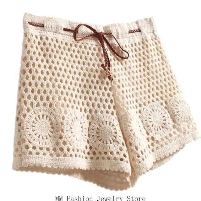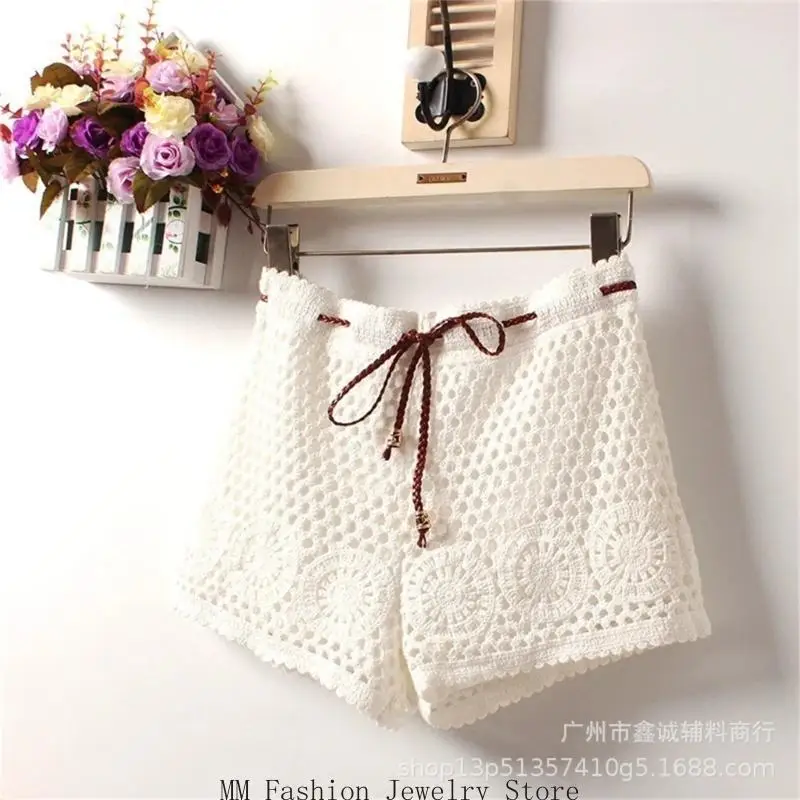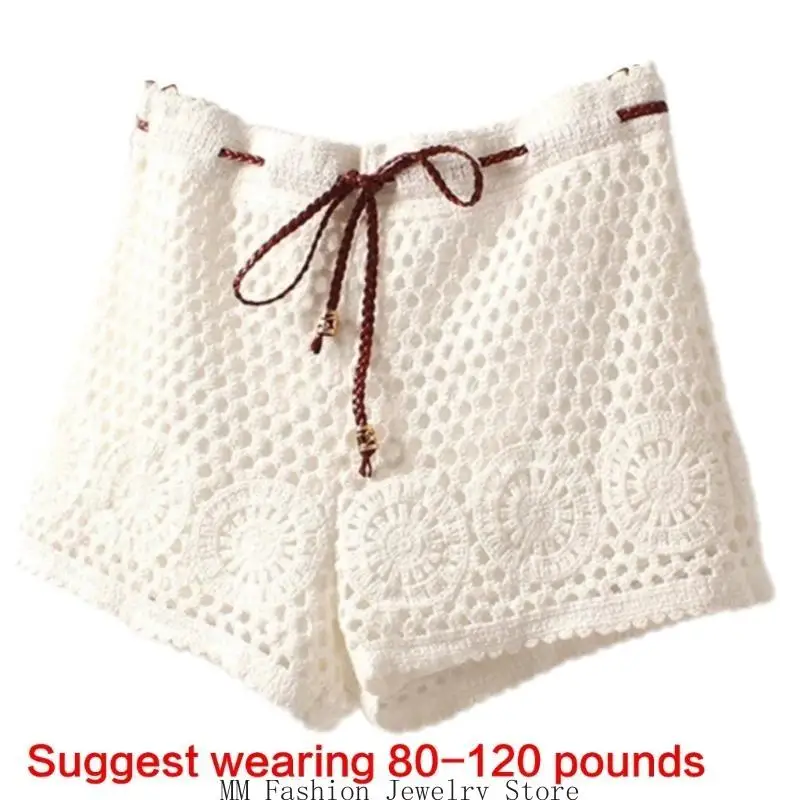 Discover elegances and styles with our Hollowout Crochet Knit Lace Loose Shorts, feature lace embroidery combined with a unique hollowed knit designs.