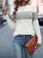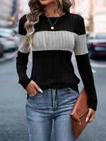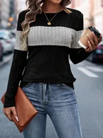Knitted sweater women’s 2024 autumn and winter new loose casual color blocked T-shirt women