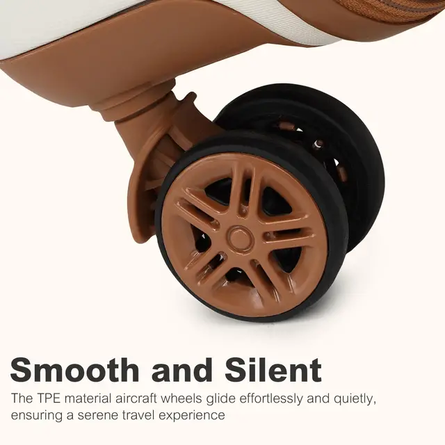 360° Spinner Wheels:Four 360° spinning wheels allow the cabin hand case to rotate flexibly in any direction, which can help travellers more easily navigate around airports or train stations and other places. The wheels are made of high-quality TPE material, which is not only wear-resistant, but also realizes low-noise operation, making every trip enjoyable, and enjoying a convenient and reliable new travel experience.