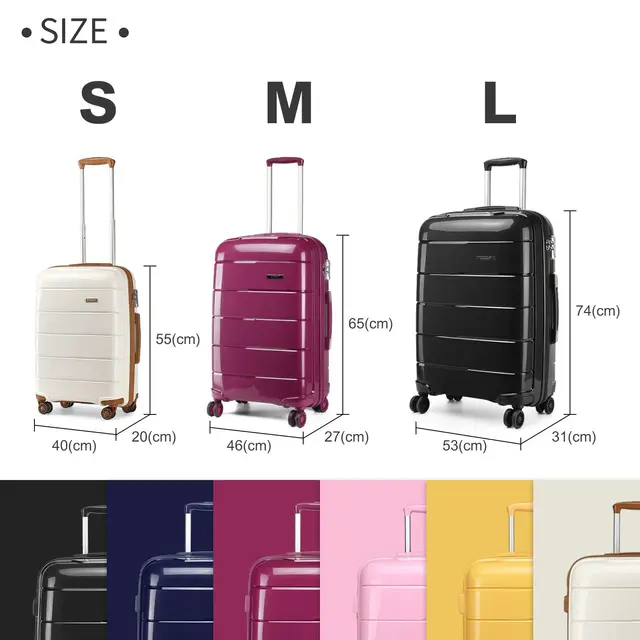 Kono Lightweight 20 24 28 Inch PP Hard Shell 4 Wheel Spinner Suitcase Set with TSA Lock, Check-In Luggage