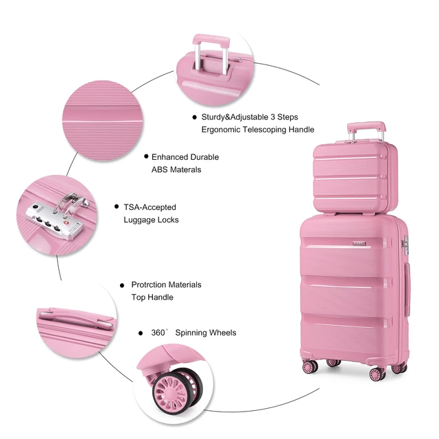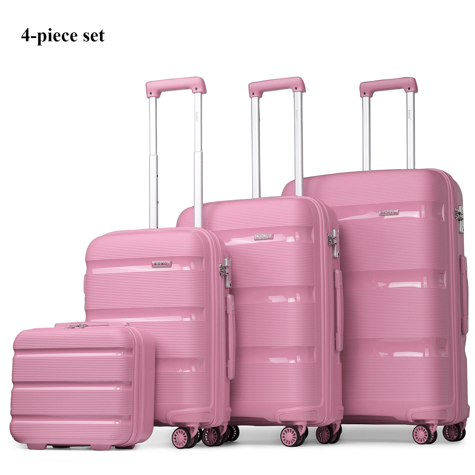 Kono Luggage ,Hard Shell Travel Trolley 4 Spinner Wheels Lightweight Polypropylene Suitcase with TSA Lock (Pink)