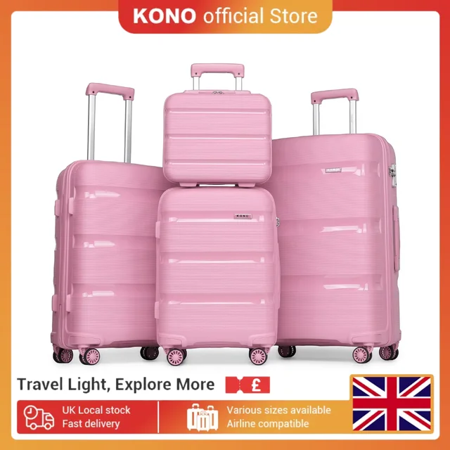 Kono Luggage ,Hard Shell Travel Trolley 4 Spinner Wheels Lightweight Polypropylene Suitcase with TSA