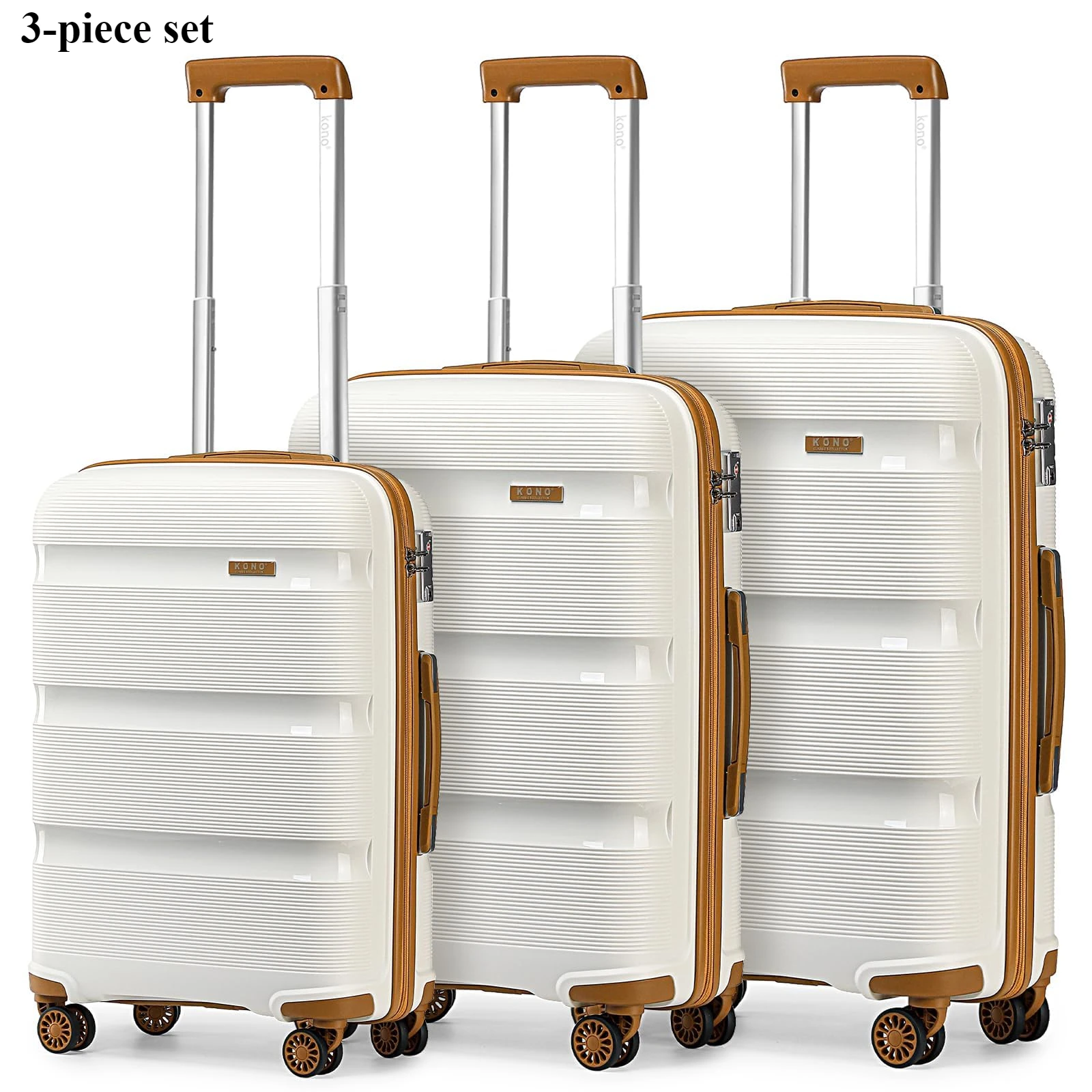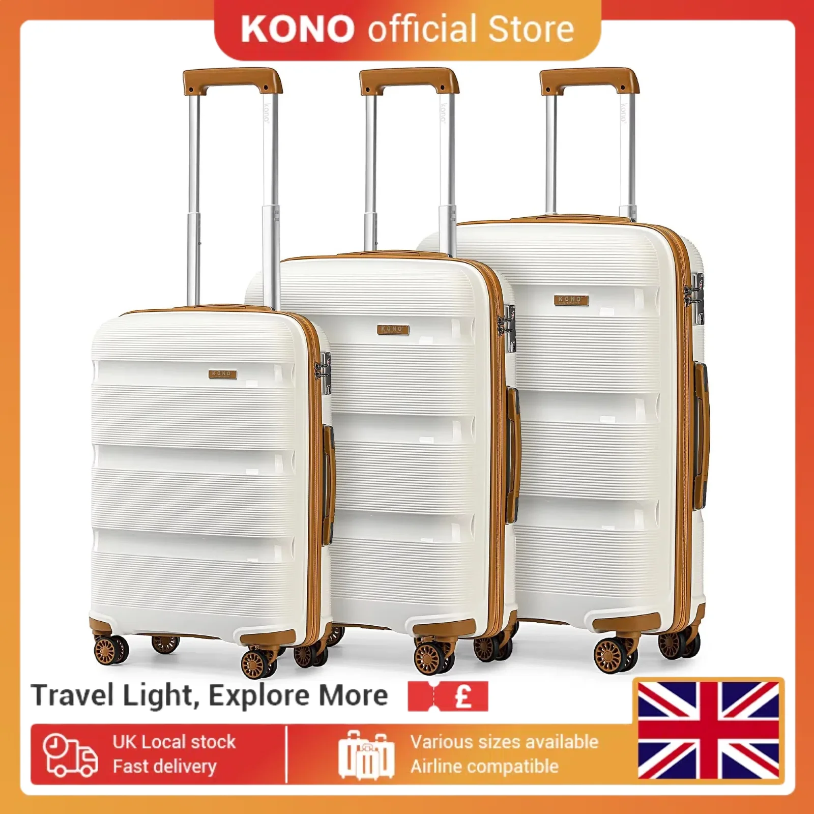 Kono Luggage Sets Hard Shell Travel Trolley 4 Spinner Wheels Lightweight Polypropylene Suitcase with