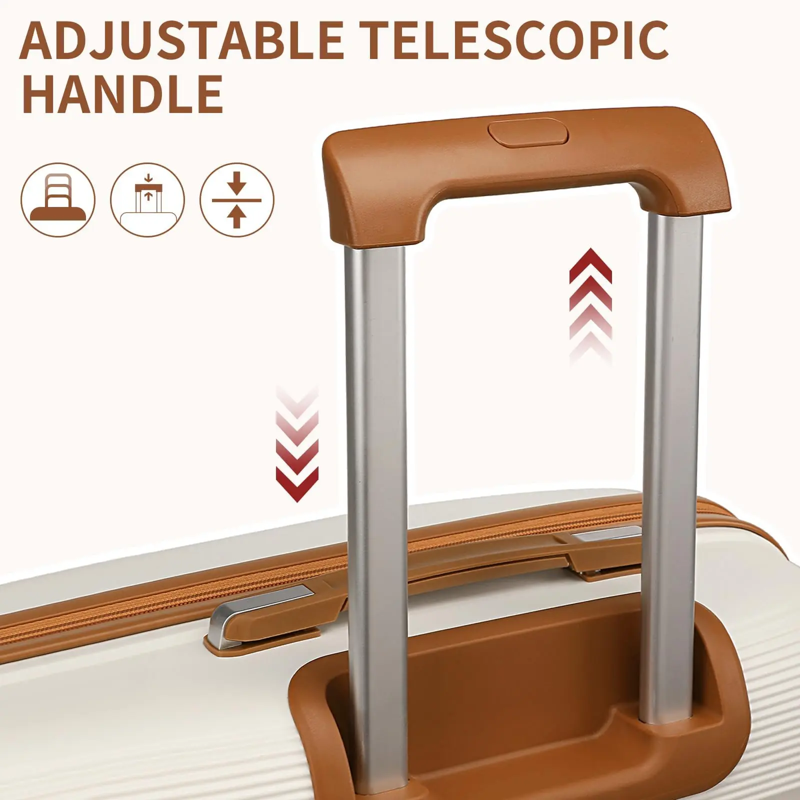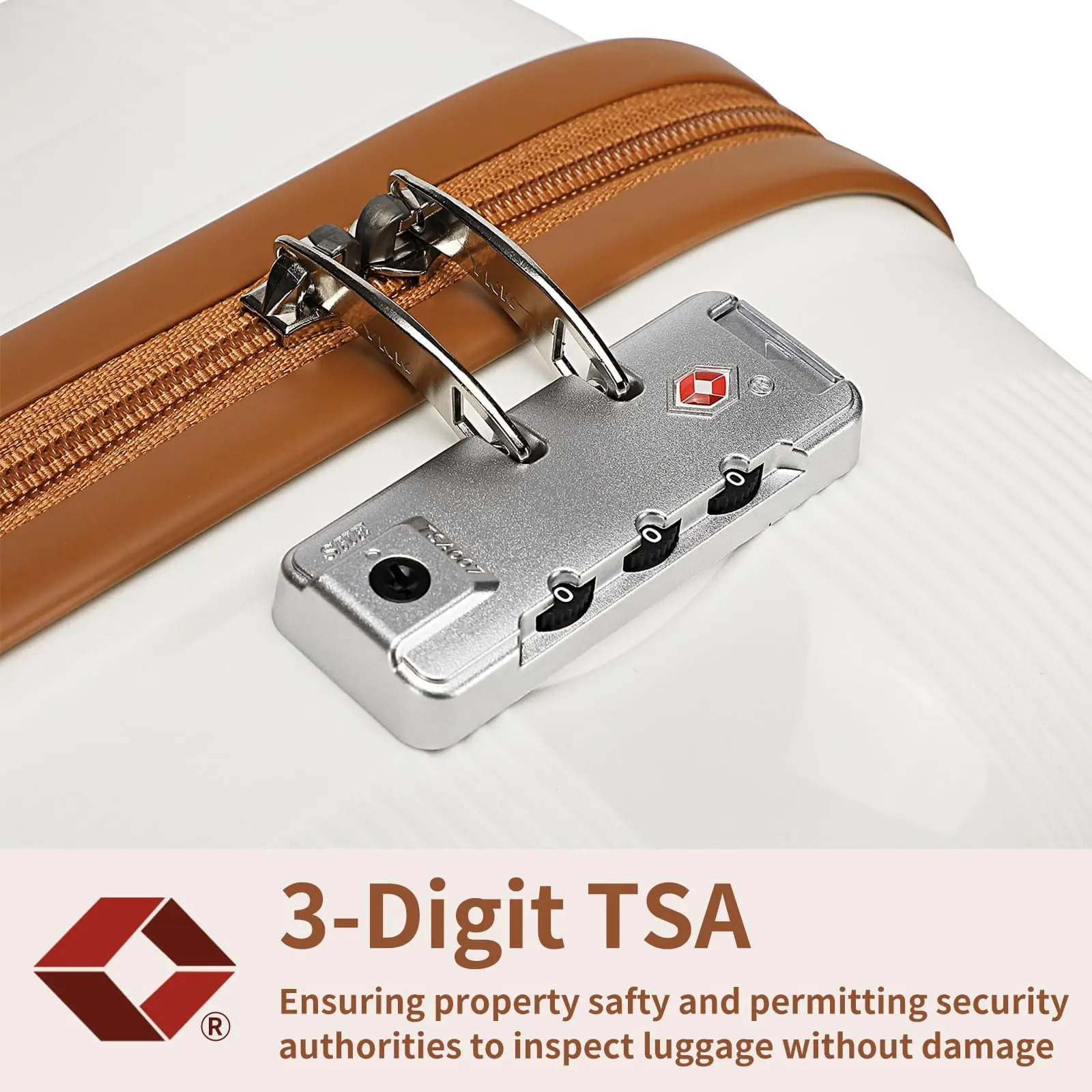 Kono Luggage Sets Hard Shell Travel Trolley 4 Spinner Wheels Lightweight Polypropylene Suitcase with TSA Lock (Cream White)