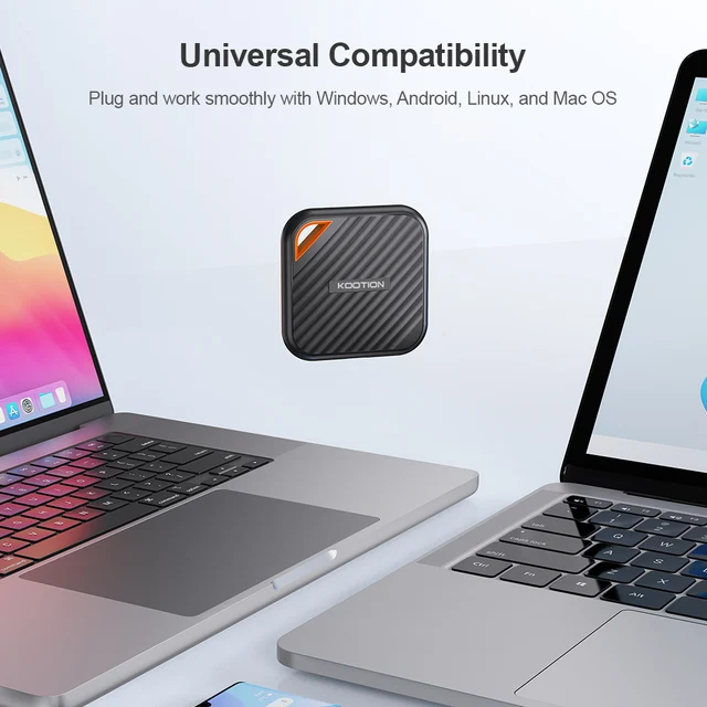 Wide Compatibility. Included with a USB-C cable with a USB-C to USB-A adapter, this USB C portable SSD makes it effortless to move contents among your USB-C smartphones, tablets, iPhone 15, 16,iPad Pro, MacBook, USB-A computers and game consoles.
