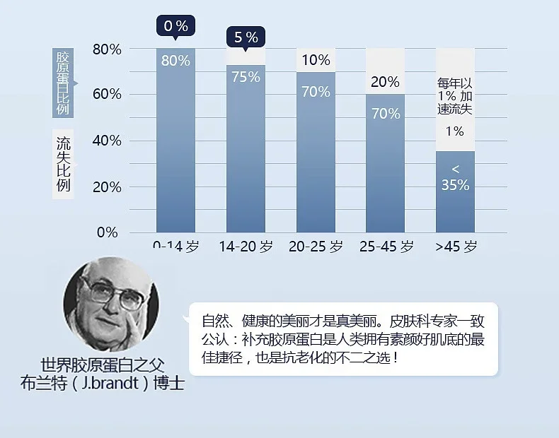 Collagen accounts for about 25-30% of the total protein in the human body, equivalent to 6% of body weight, and plays a triple smoothing and firming role in supporting, repairing and protecting the skin
