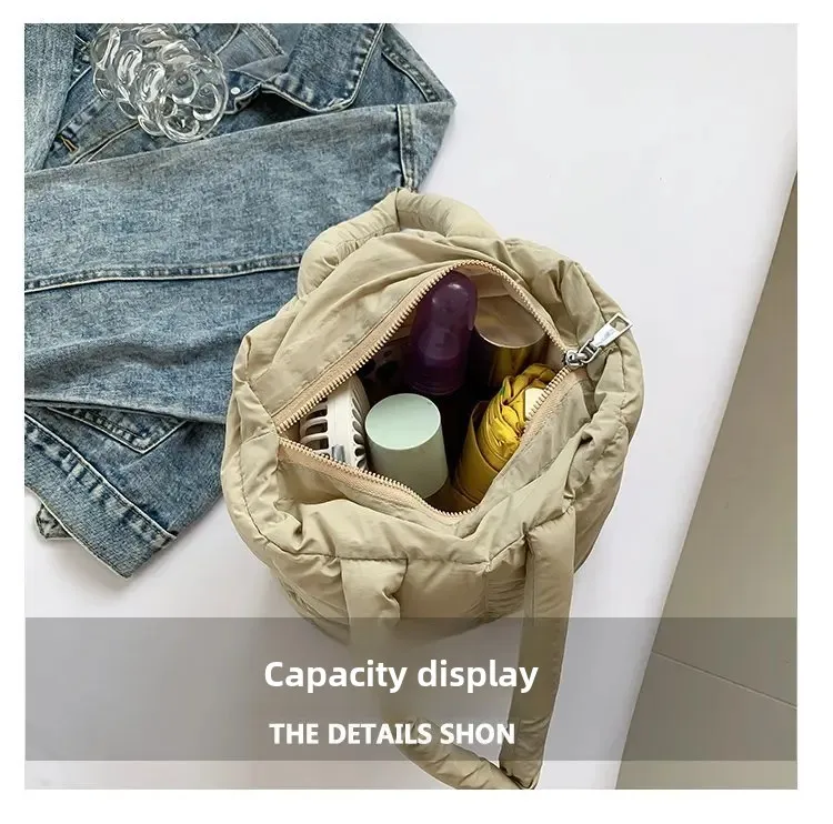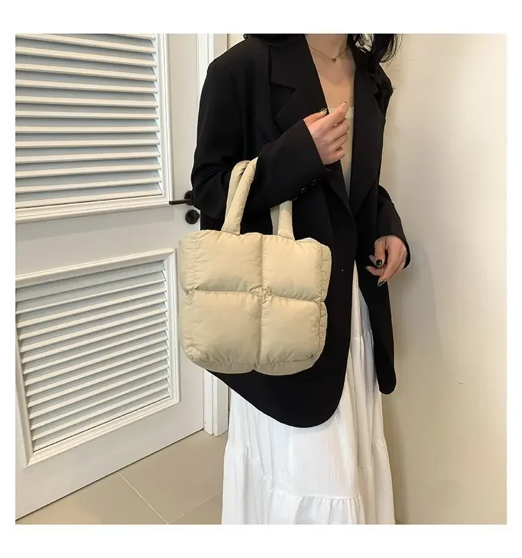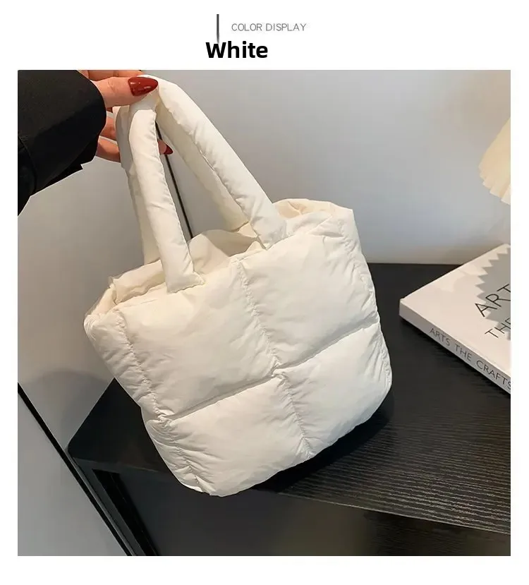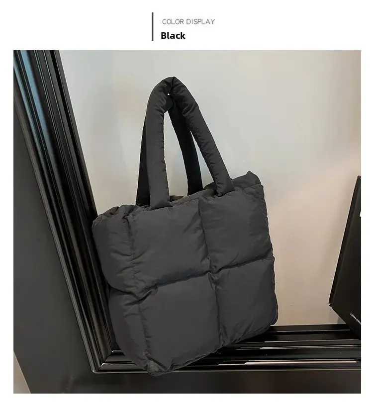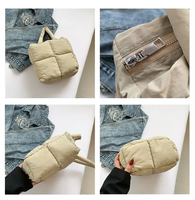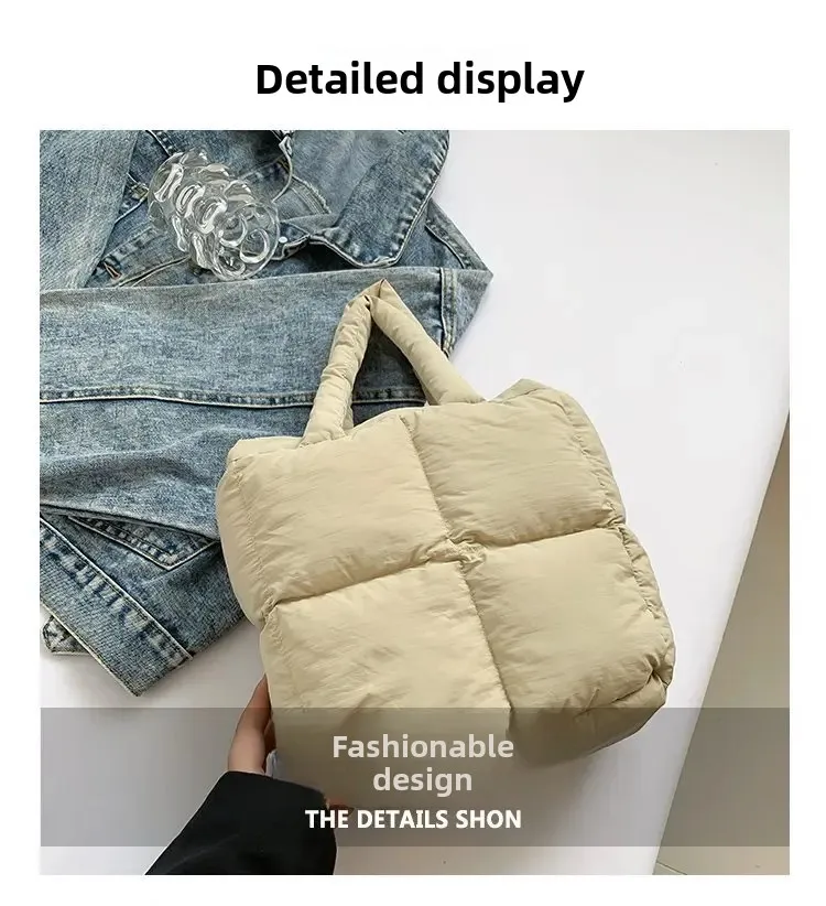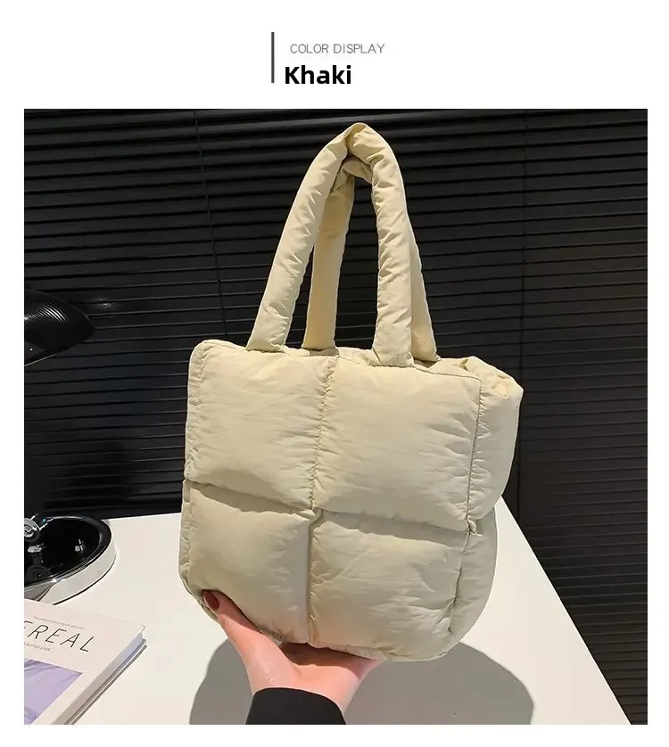 Korean Fashion Cotton Handbag Women's Winter New Style Versatile Crossbody Bag Simple Handbag Soft Zipper Polyester Lining