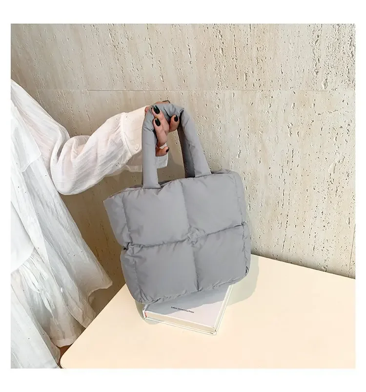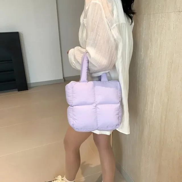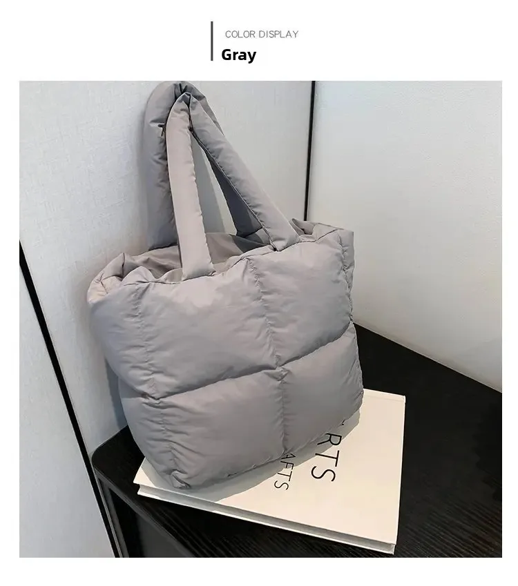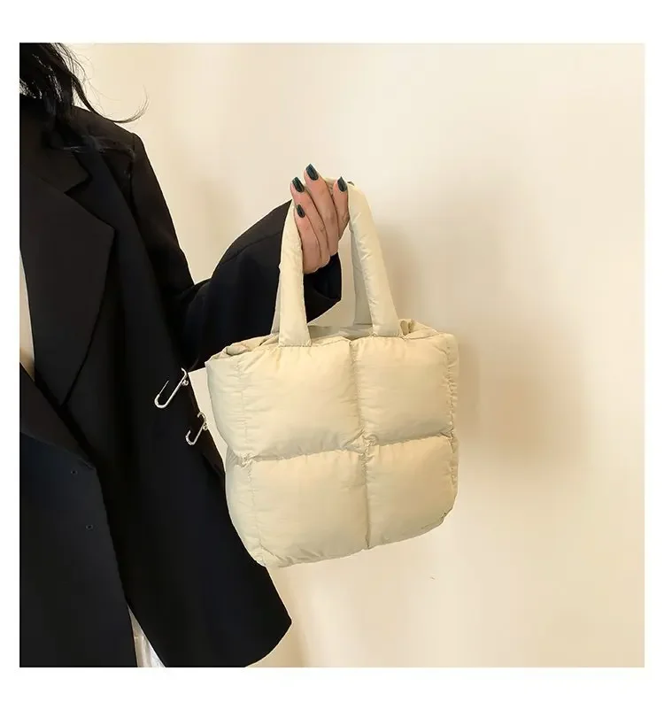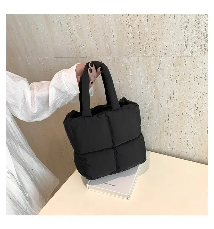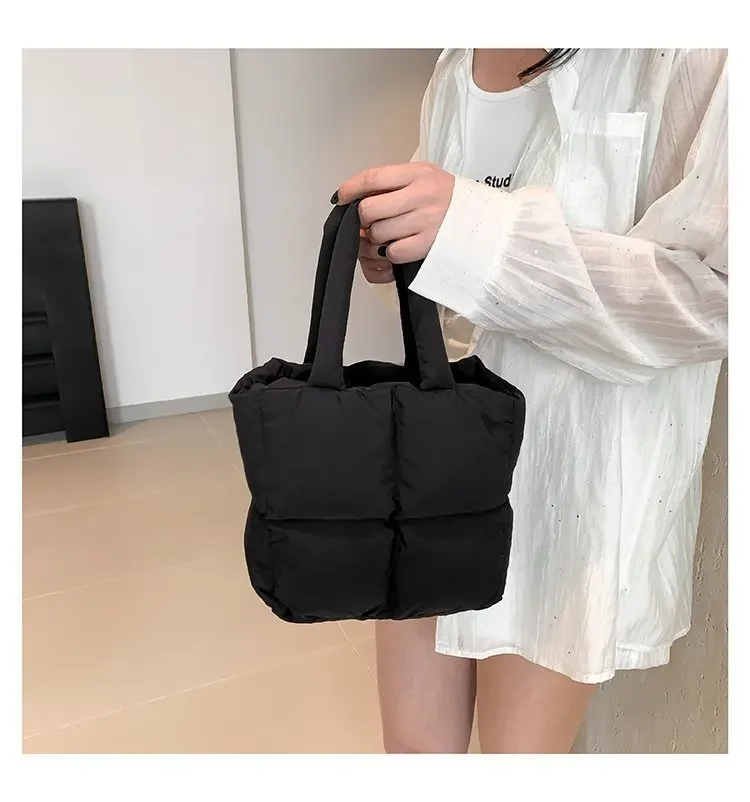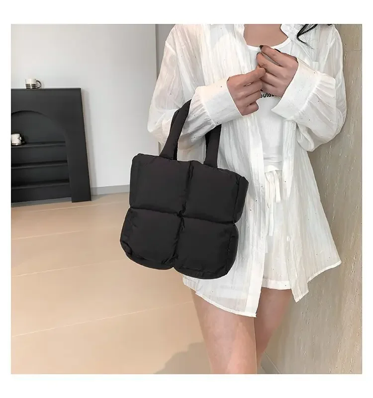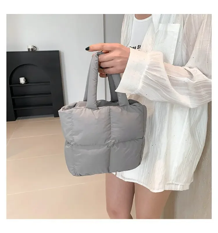 Korean Fashion Cotton Handbag Women's Winter New Style Versatile Crossbody Bag Simple Handbag Soft Zipper Polyester Lining