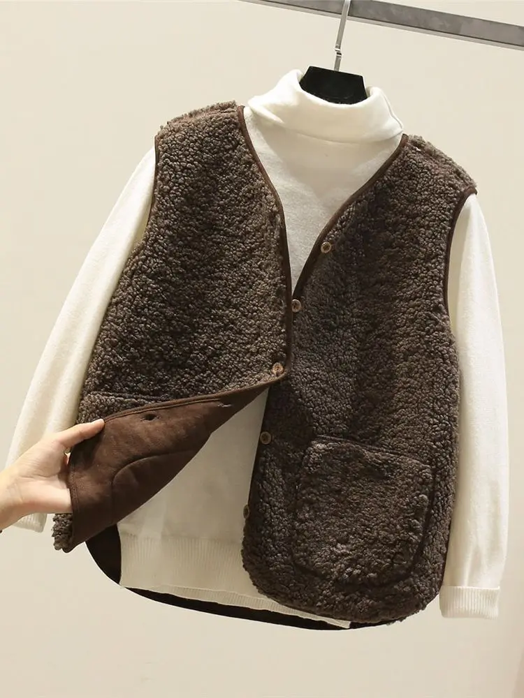 Korean New Vests 2025 Spring Autumn Vest Women Waistcoat Winter Warm Thick Fleece Vests Women Sleeveless