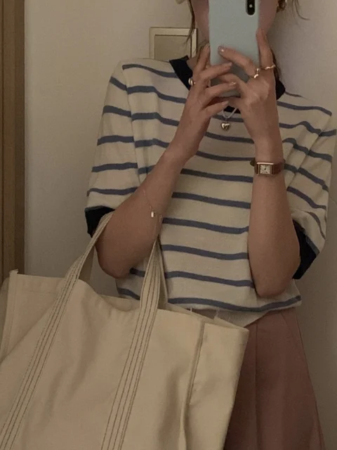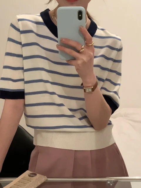 This summer top features a unique Korean retro striped design, adding a touch of vintage charm to your casual wardrobe.