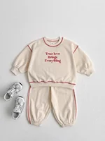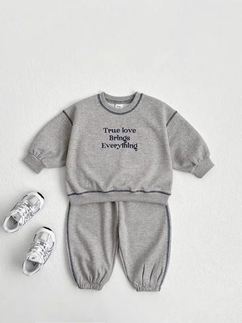 The set includes a sweatshirt and pants, both featuring a simple pull-over design for easy dressing.
