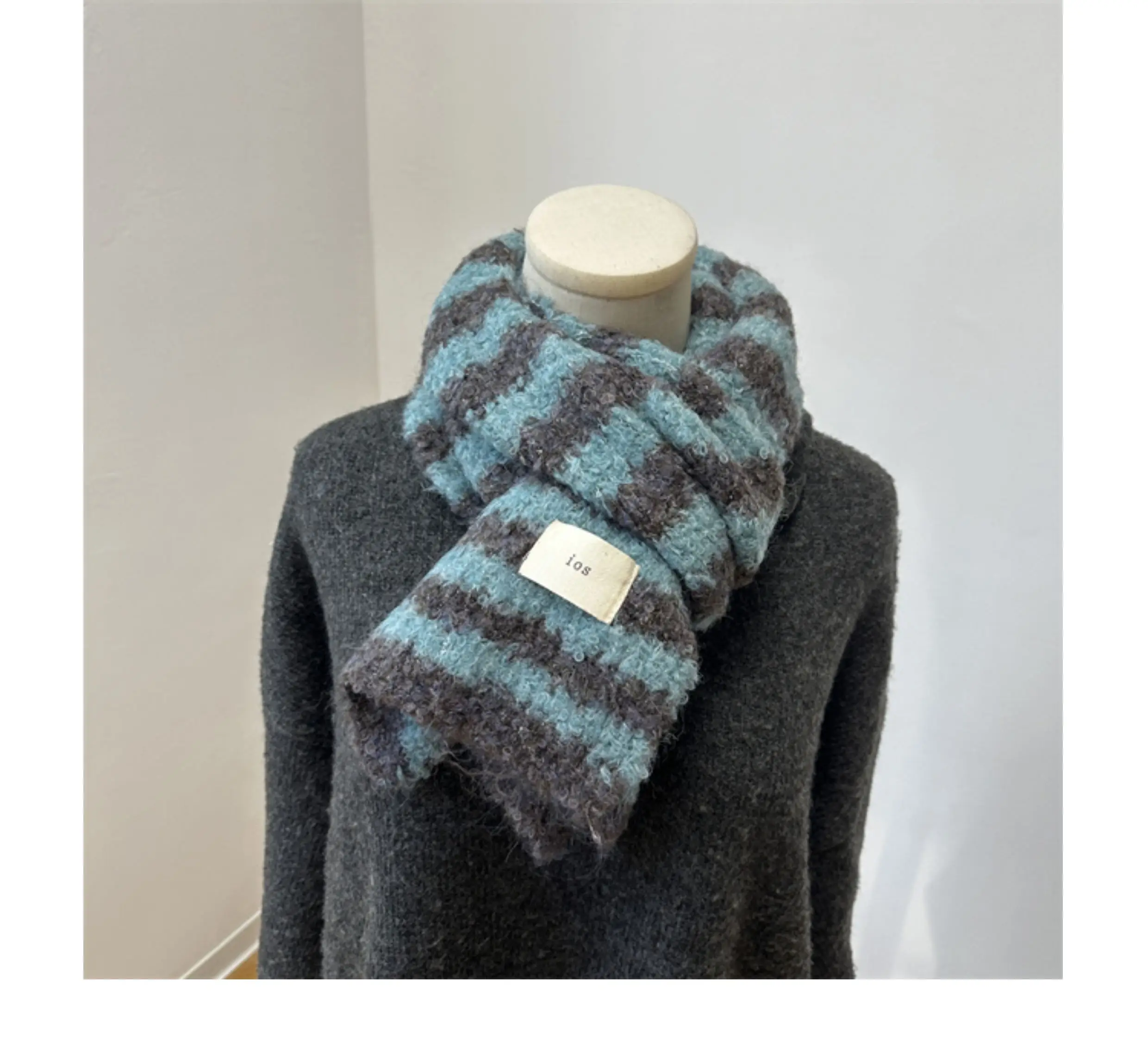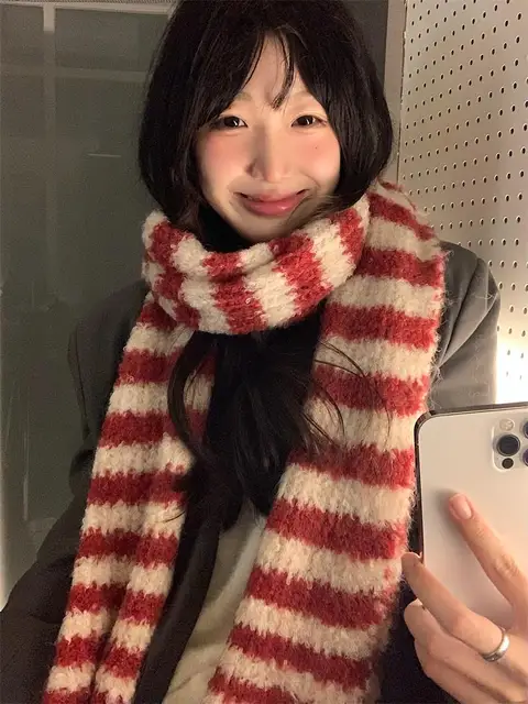 This scarf features a trendy Korean style, making it a fashionable accessory for any winter outfit.