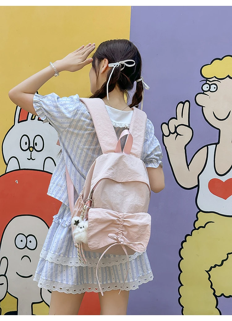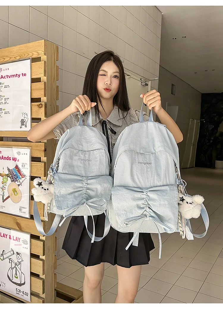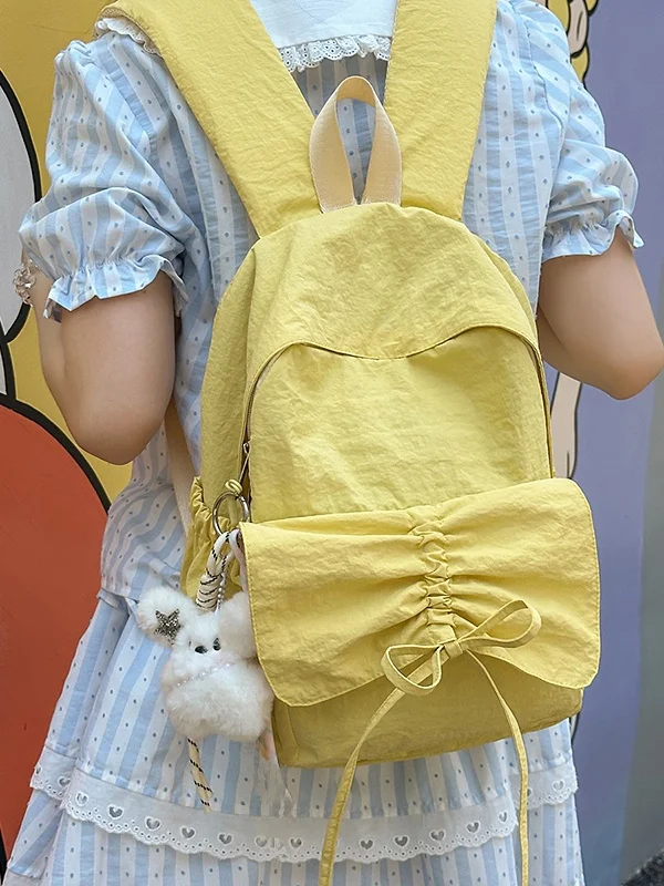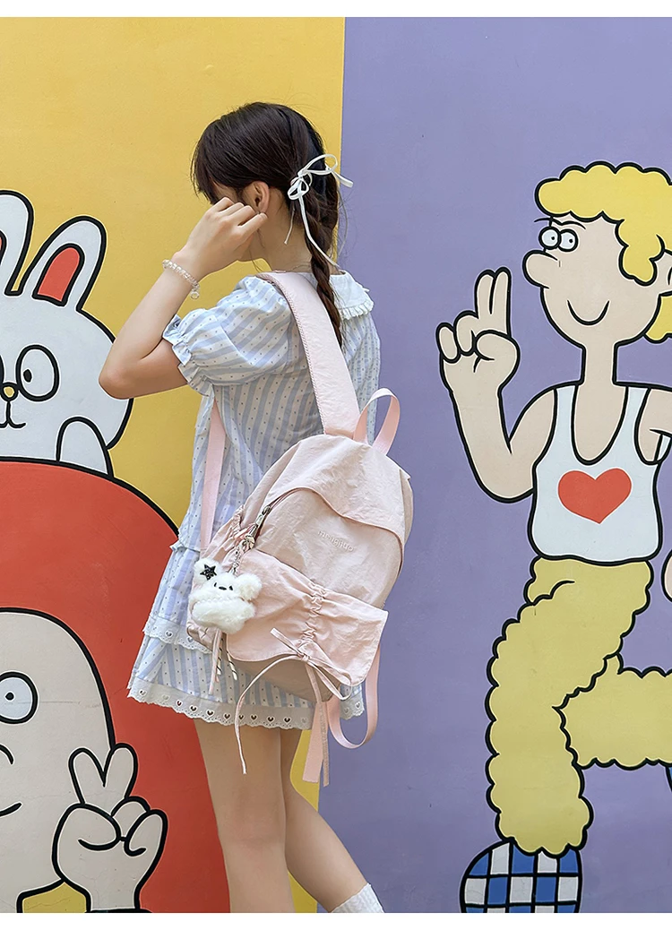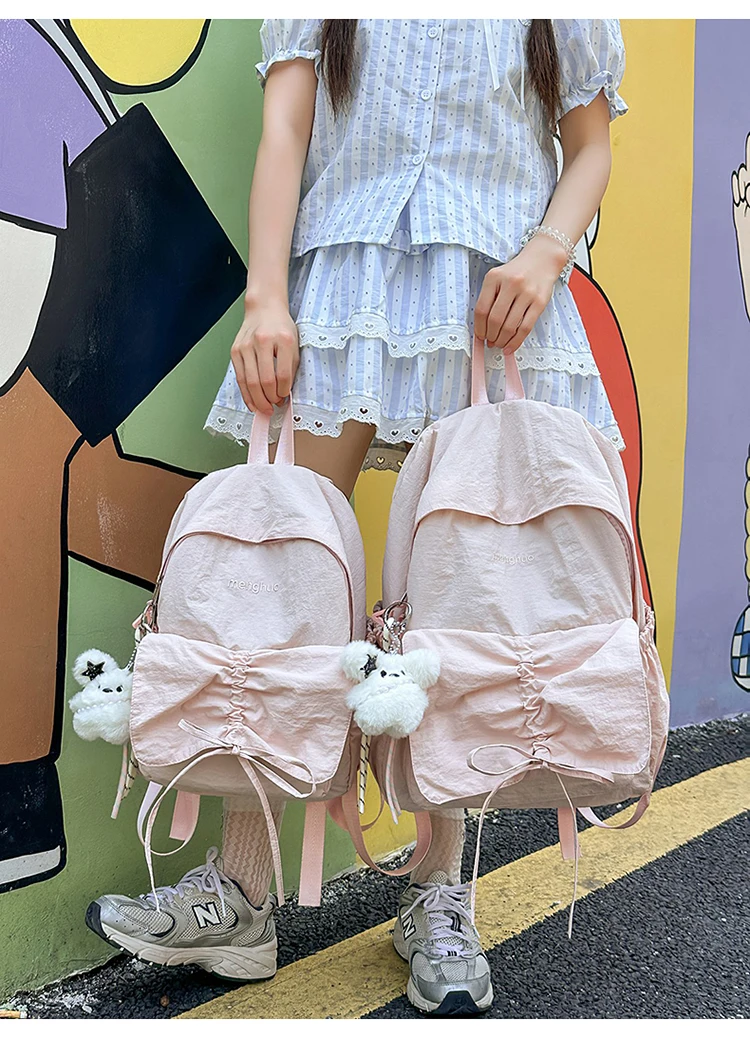 Inspired by Korean fashion, this backpack features a high visual appeal with its cute butterfly knot design.