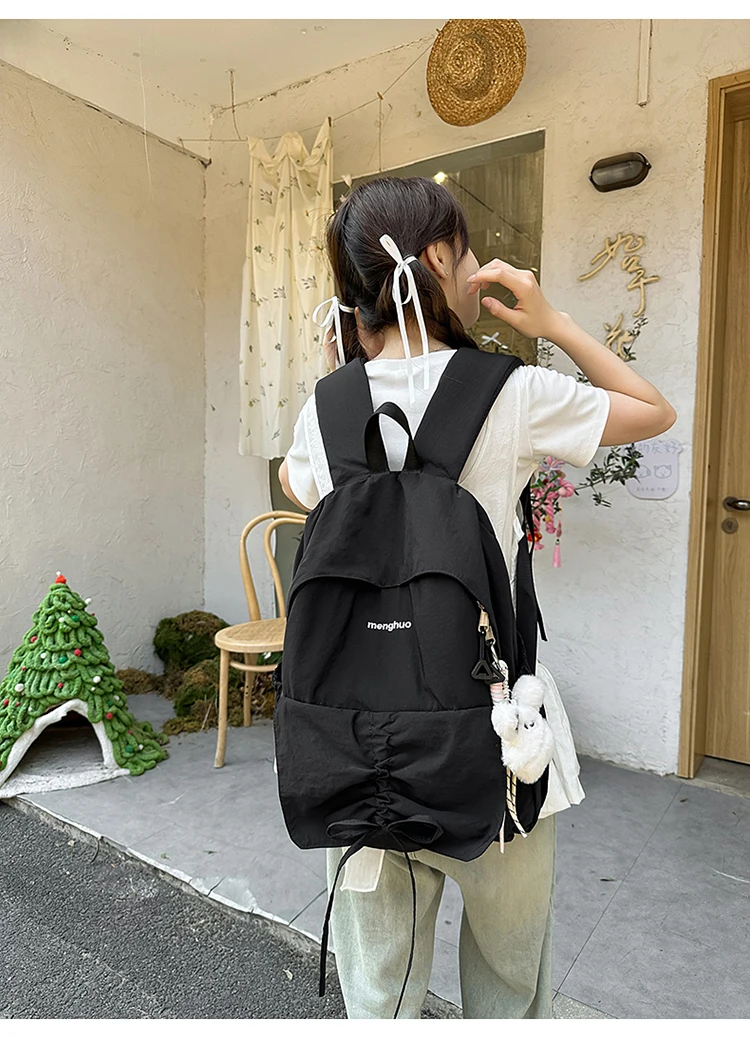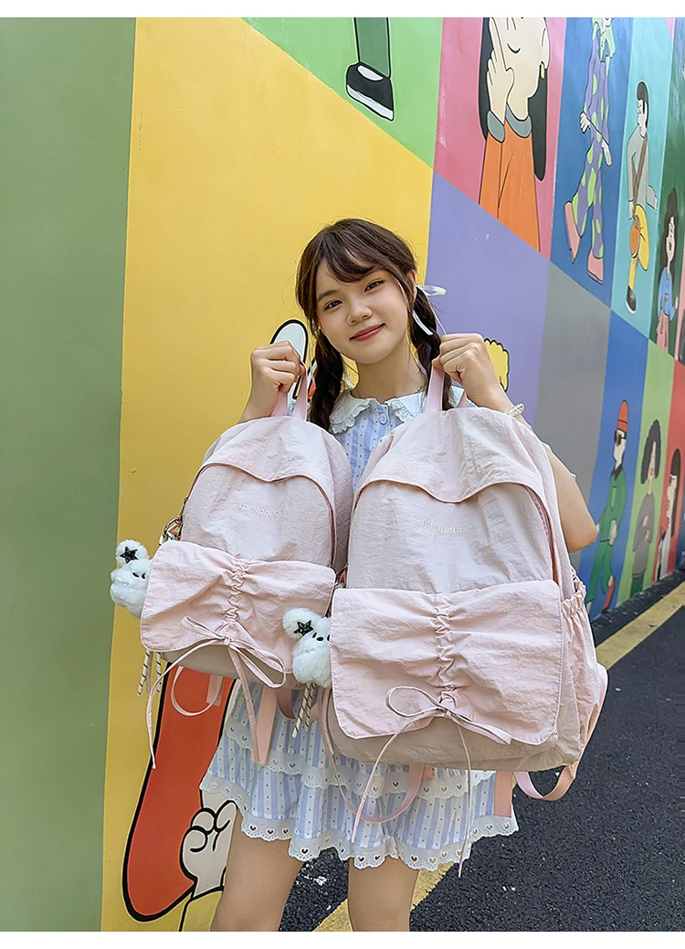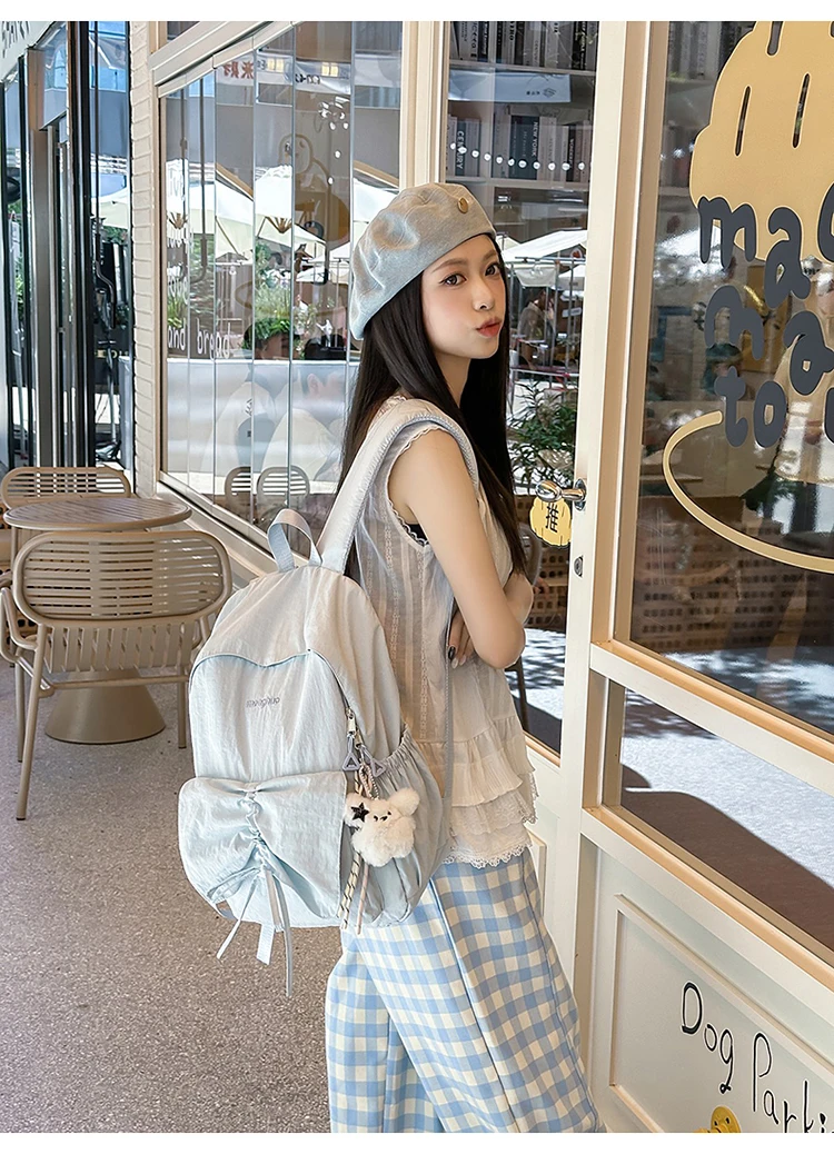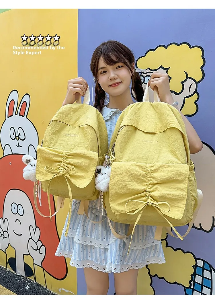 Inspired by Korean fashion, this backpack features a high visual appeal with its cute butterfly knot design.