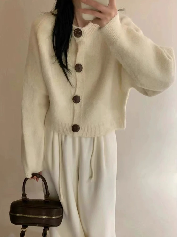 Korean Soft Sweater Jacket Autumn Winter New Loose Button Women's Cardigan Top Casual O-neck Long Sleeved Knitted Cardigan