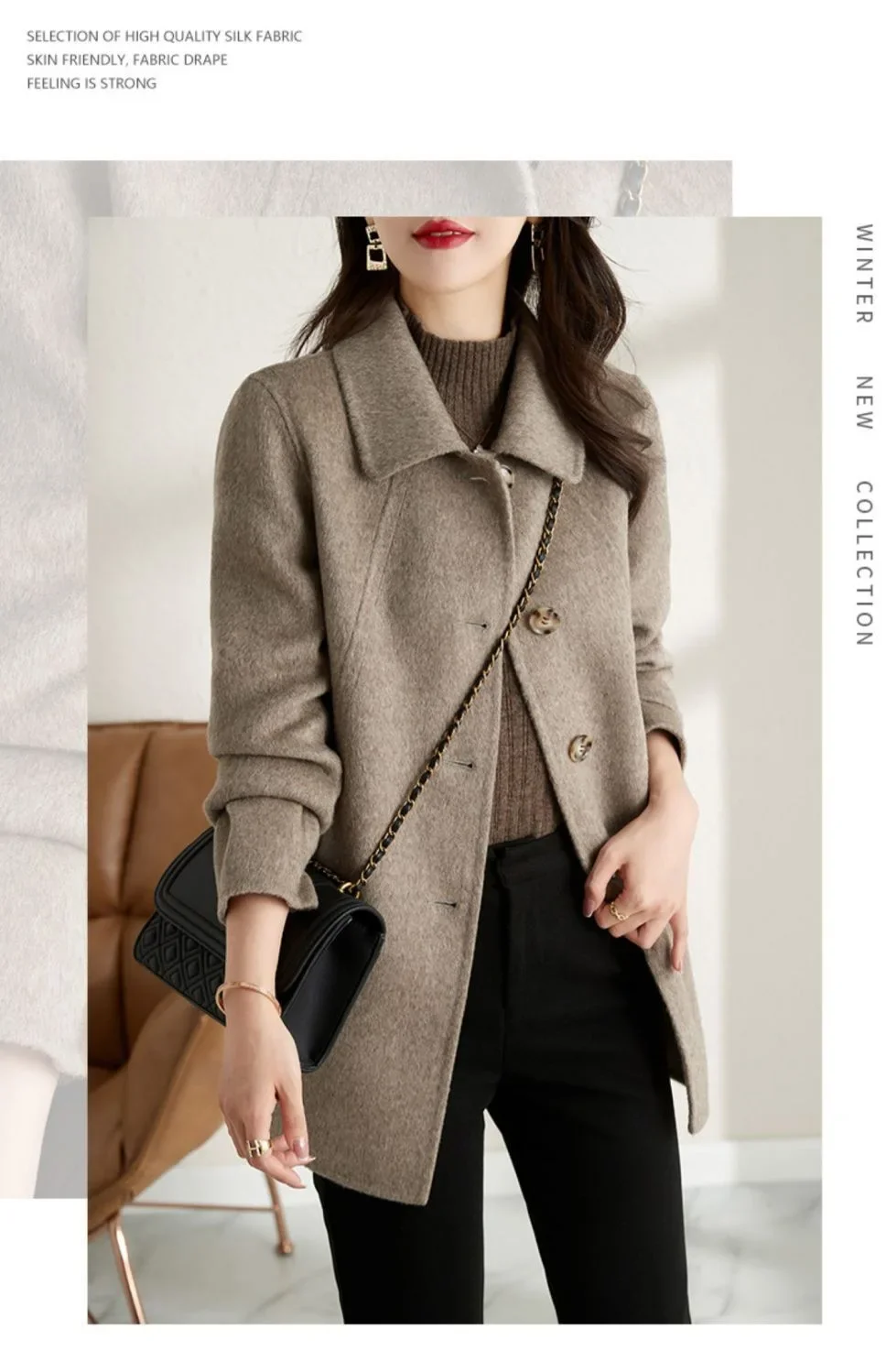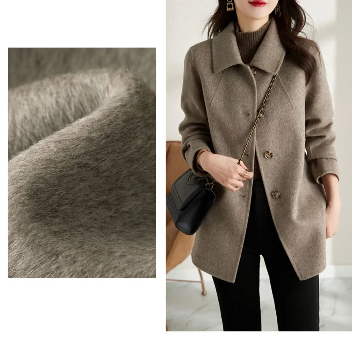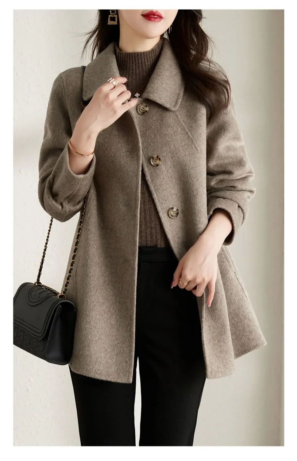 • Doll Collar Feature : The doll collar adds a touch of femininity and sophistication, enhancing the coat’s overall appeal.