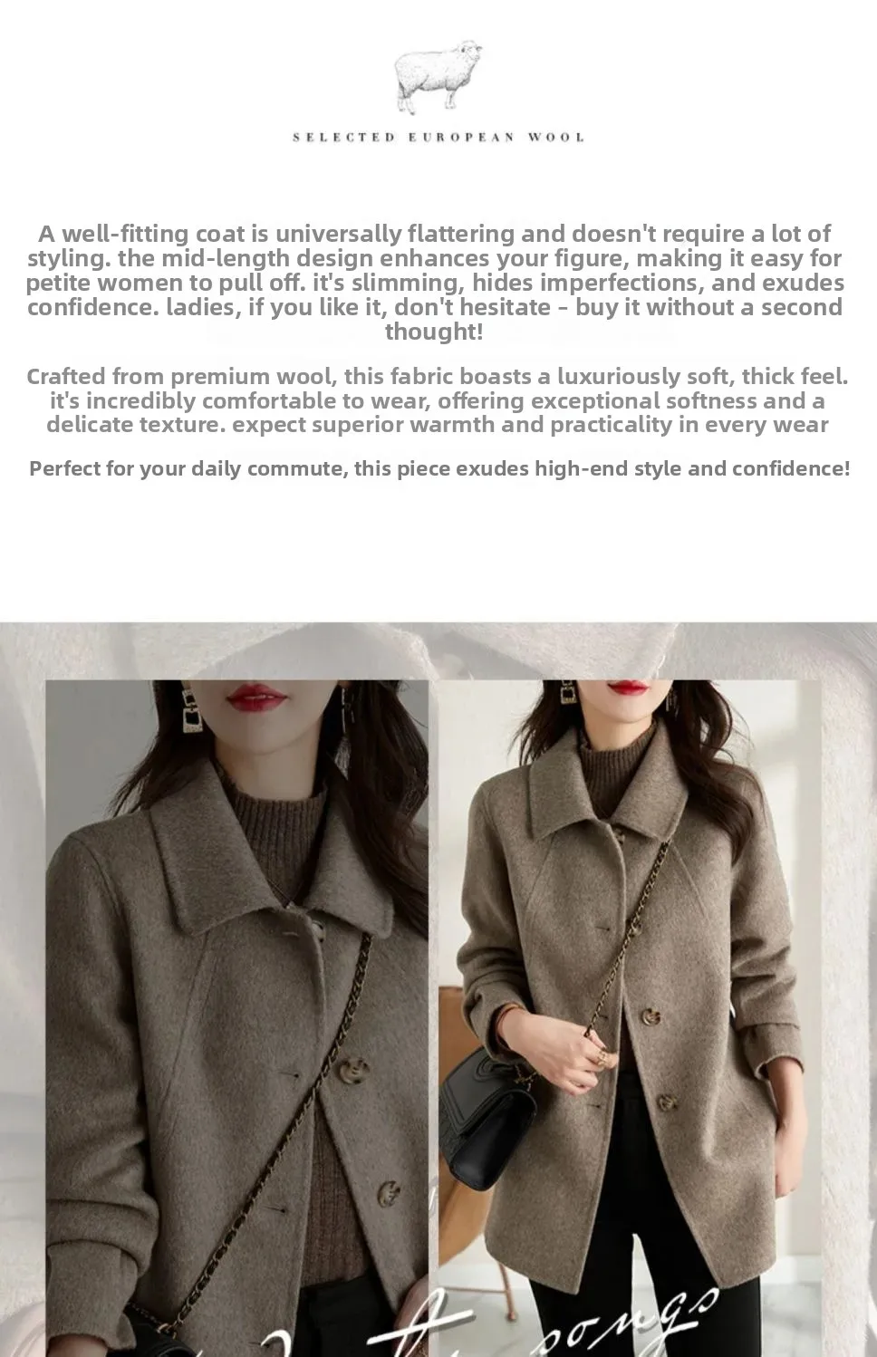 • Korean Style Design : This coat boasts a Korean style design, offering a chic and elegant look perfect for autumn and winter.