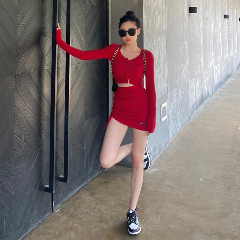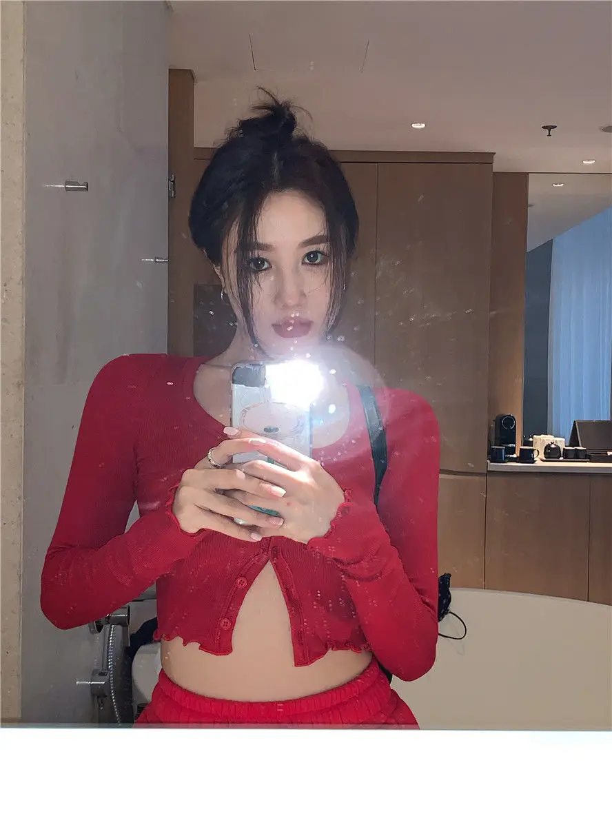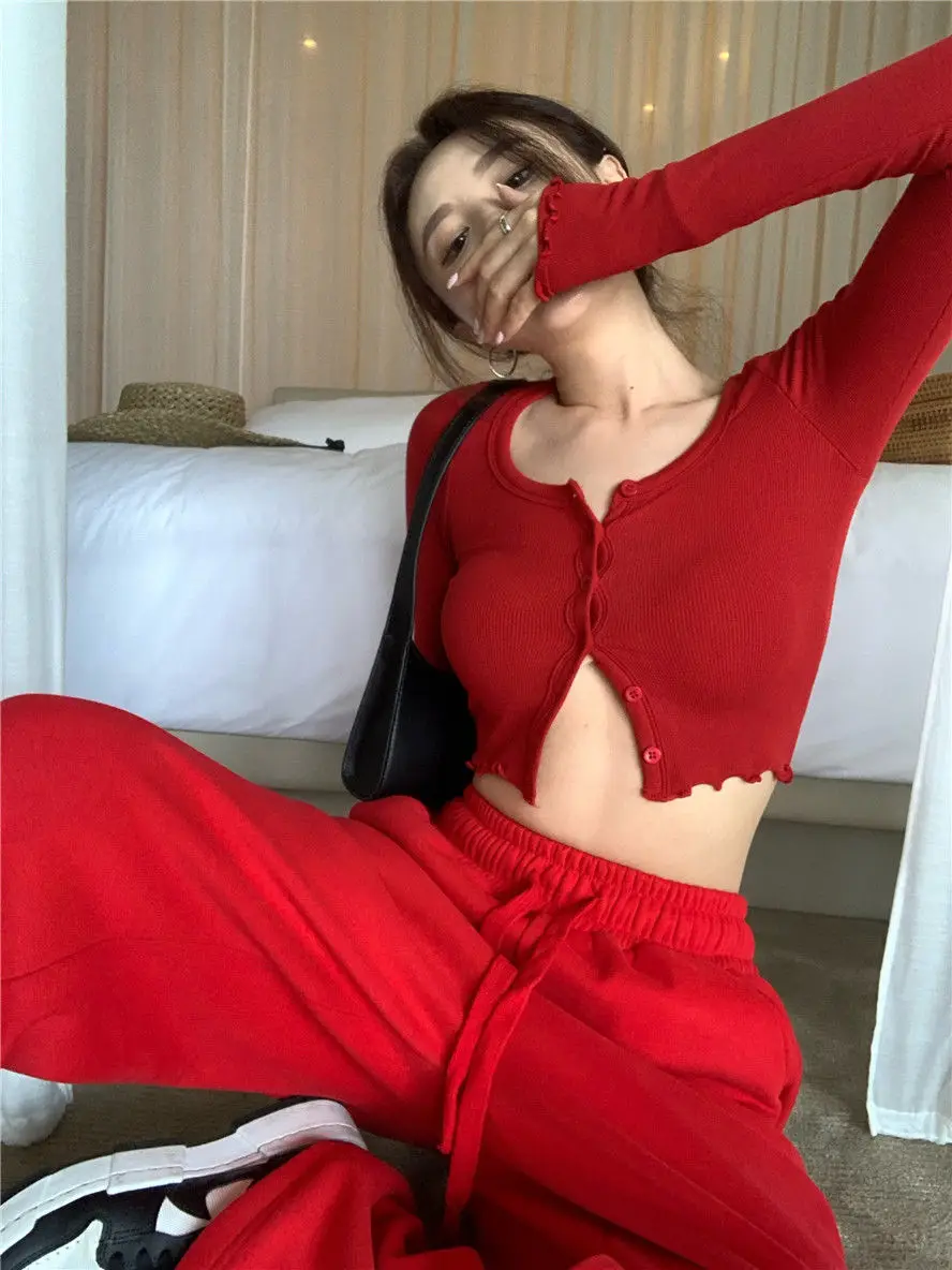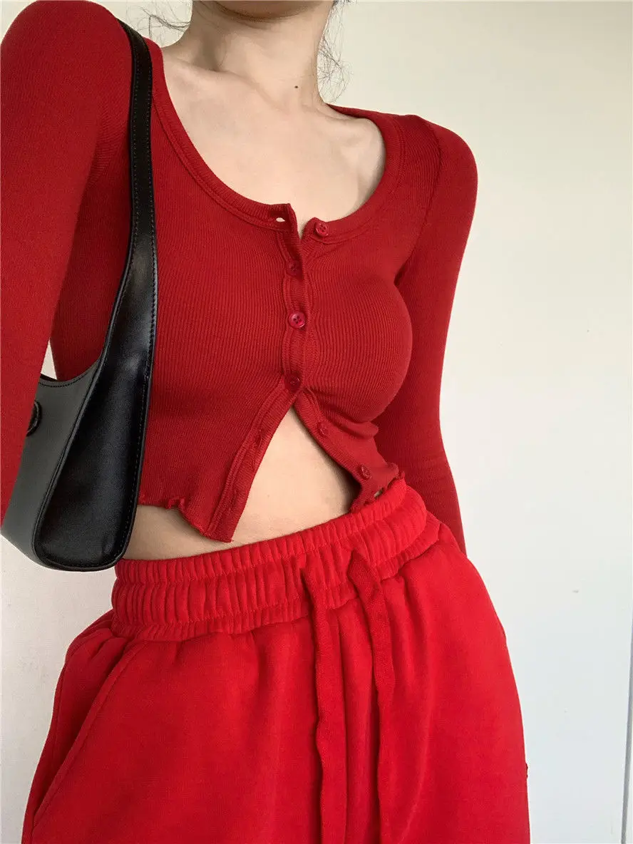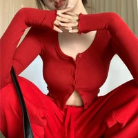 Korean Style Cardigan Women Buttons O-neck Long Sleeve Knittedwear Retro Bodycon Solid Causal Sexy Short