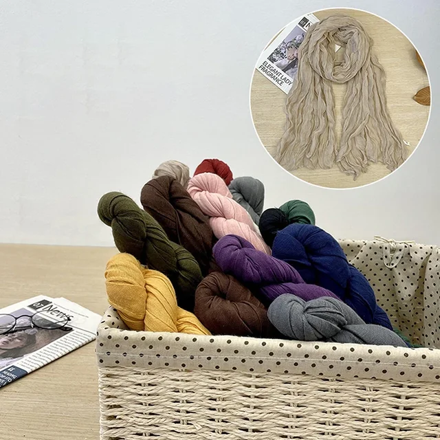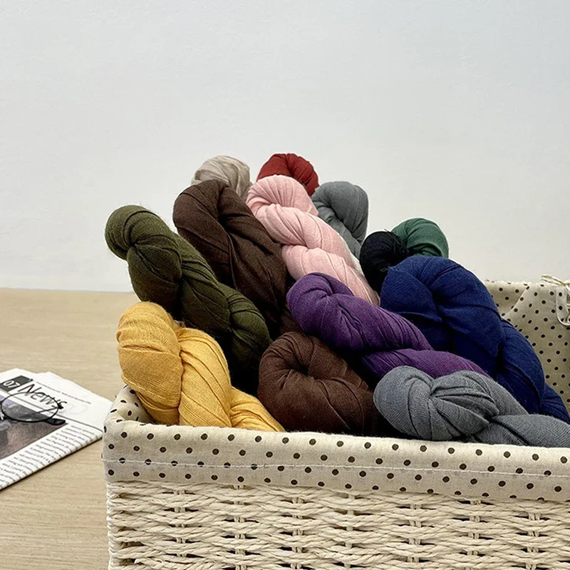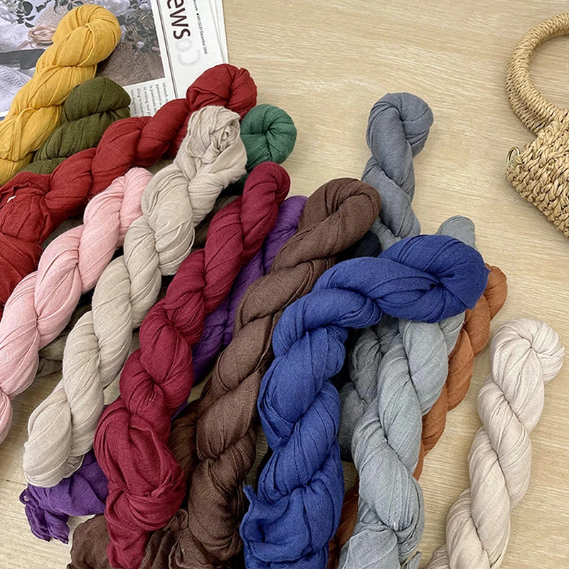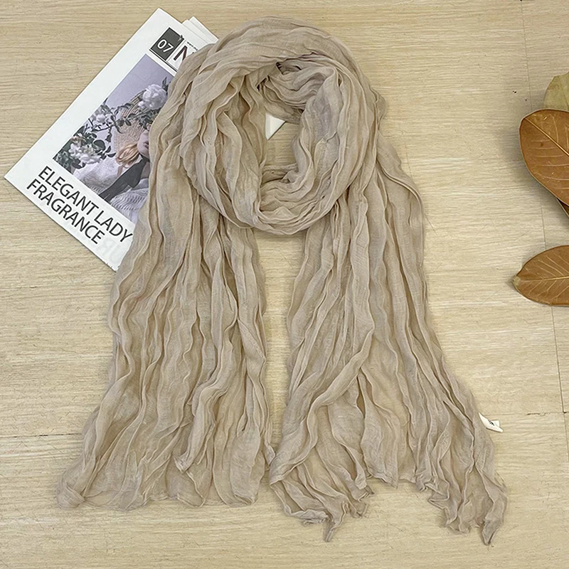 Korean Style Cotton Linen Folded Women’s Scarf Thin Pure Color Simple Match Long Shoulder Wrap