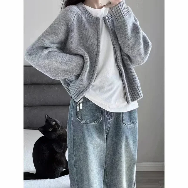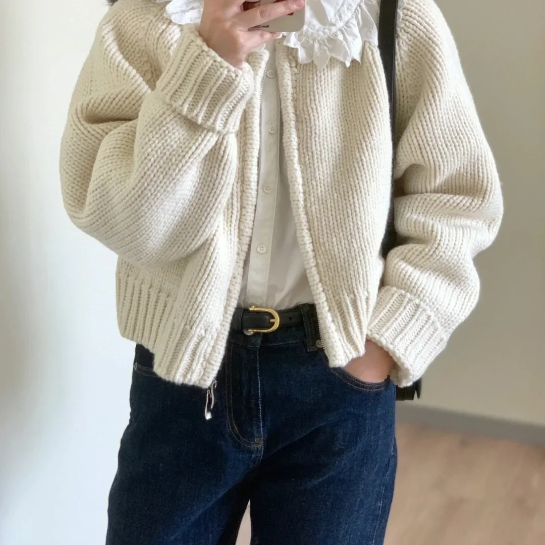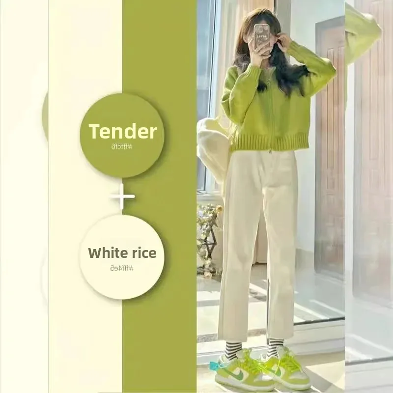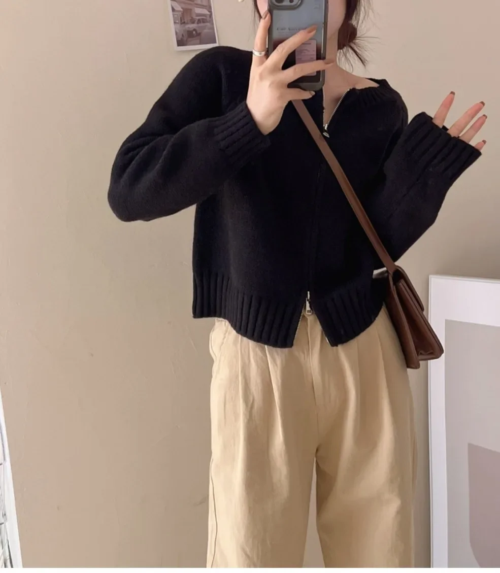 • Korean Style Design : This cardigan features a trendy Korean style, with a double zipper and avocado green color, adding a touch of elegance to any outfit.