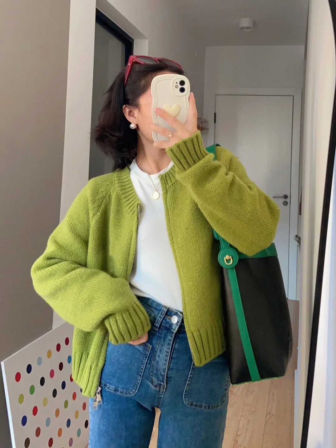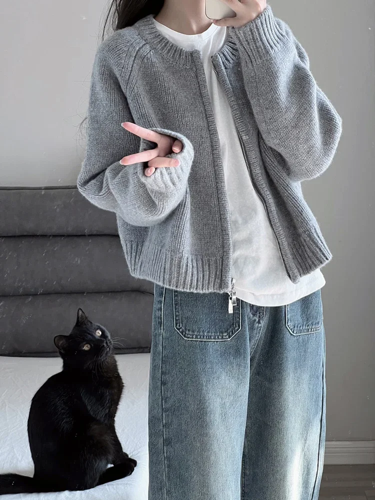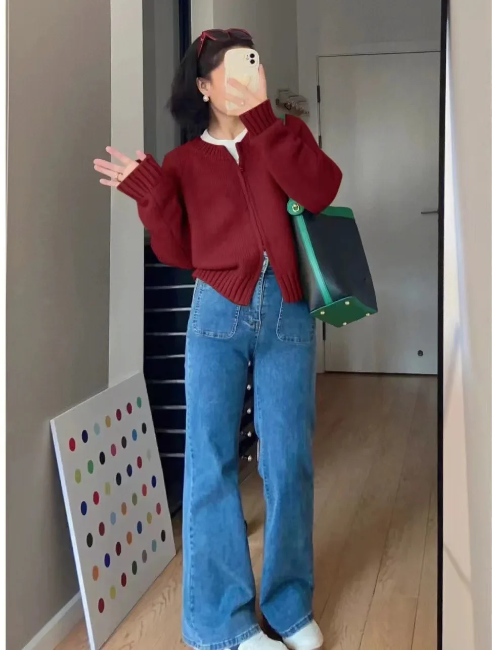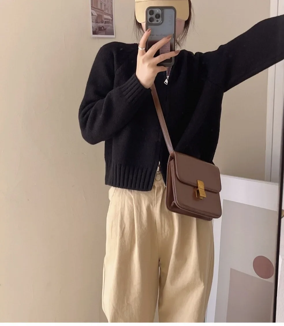 • Korean Style Design : This cardigan features a trendy Korean style, with a double zipper and avocado green color, adding a touch of elegance to any outfit.