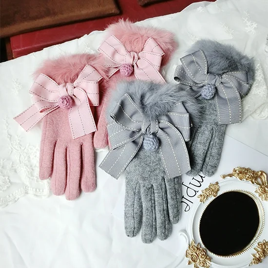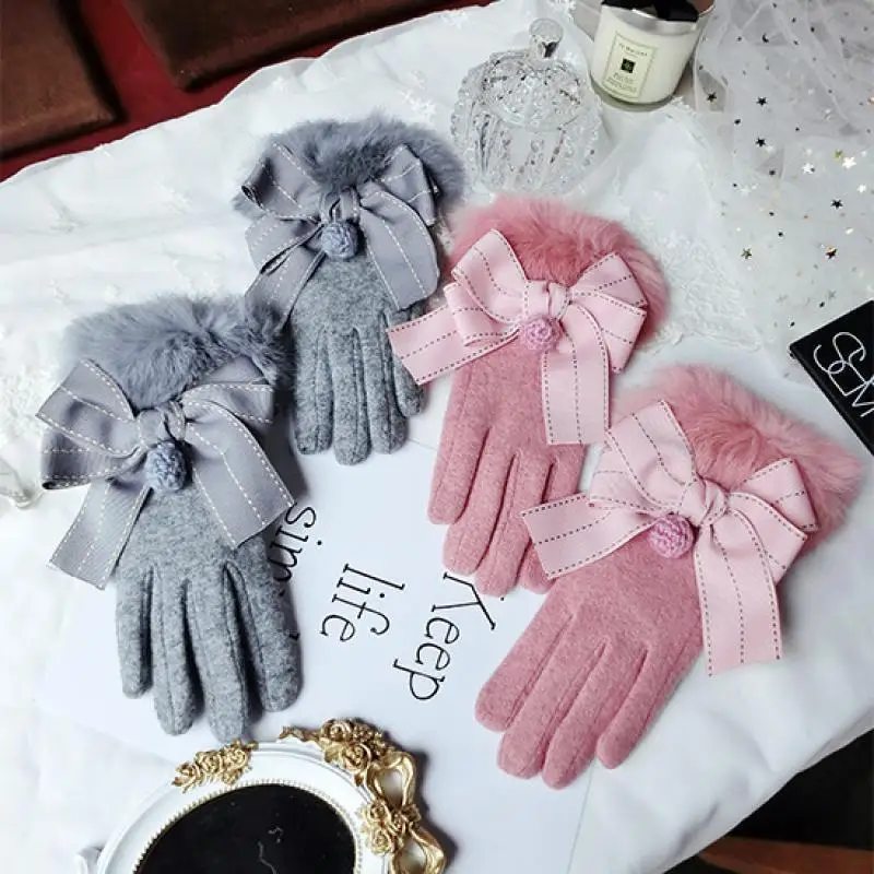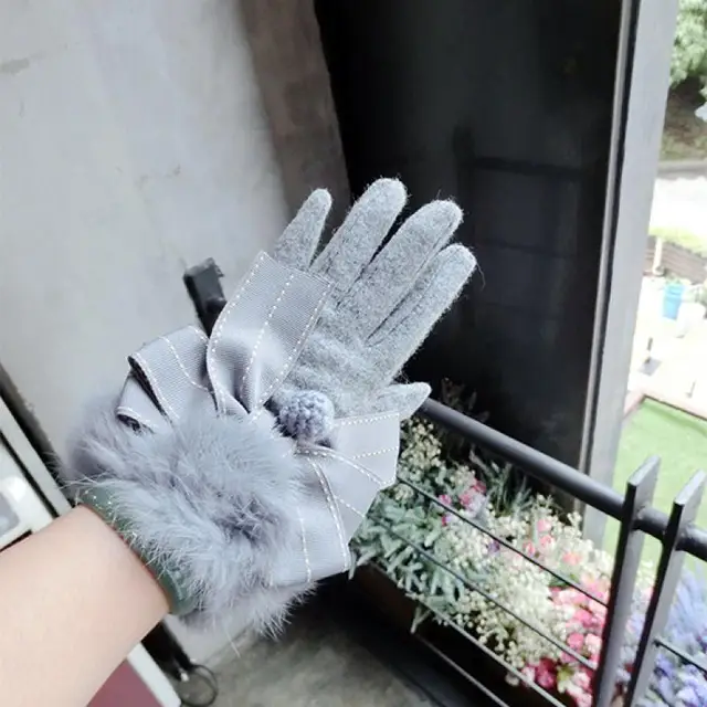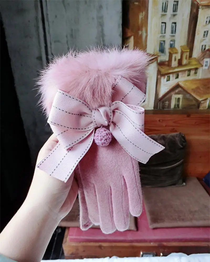 Cashmere Gloves All-Match Bowknot Rabbit Hair Wool Cashmere Gloves Fashion Cute Warm Touch Screen Thick Warm Gloves A267 USD 0/piece