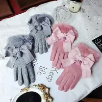 Cashmere Gloves Ring Cashmere Bowknot Ladies Gloves Fashion Korean Winter Thicken Warm Touch Screen Gloves A387 USD 0/piece