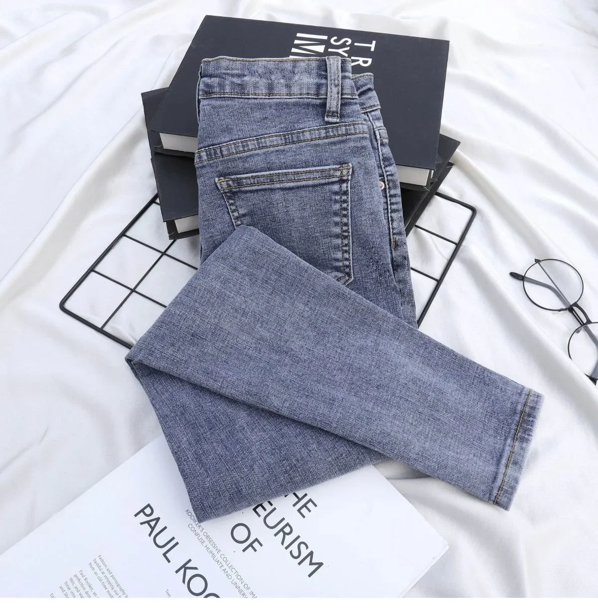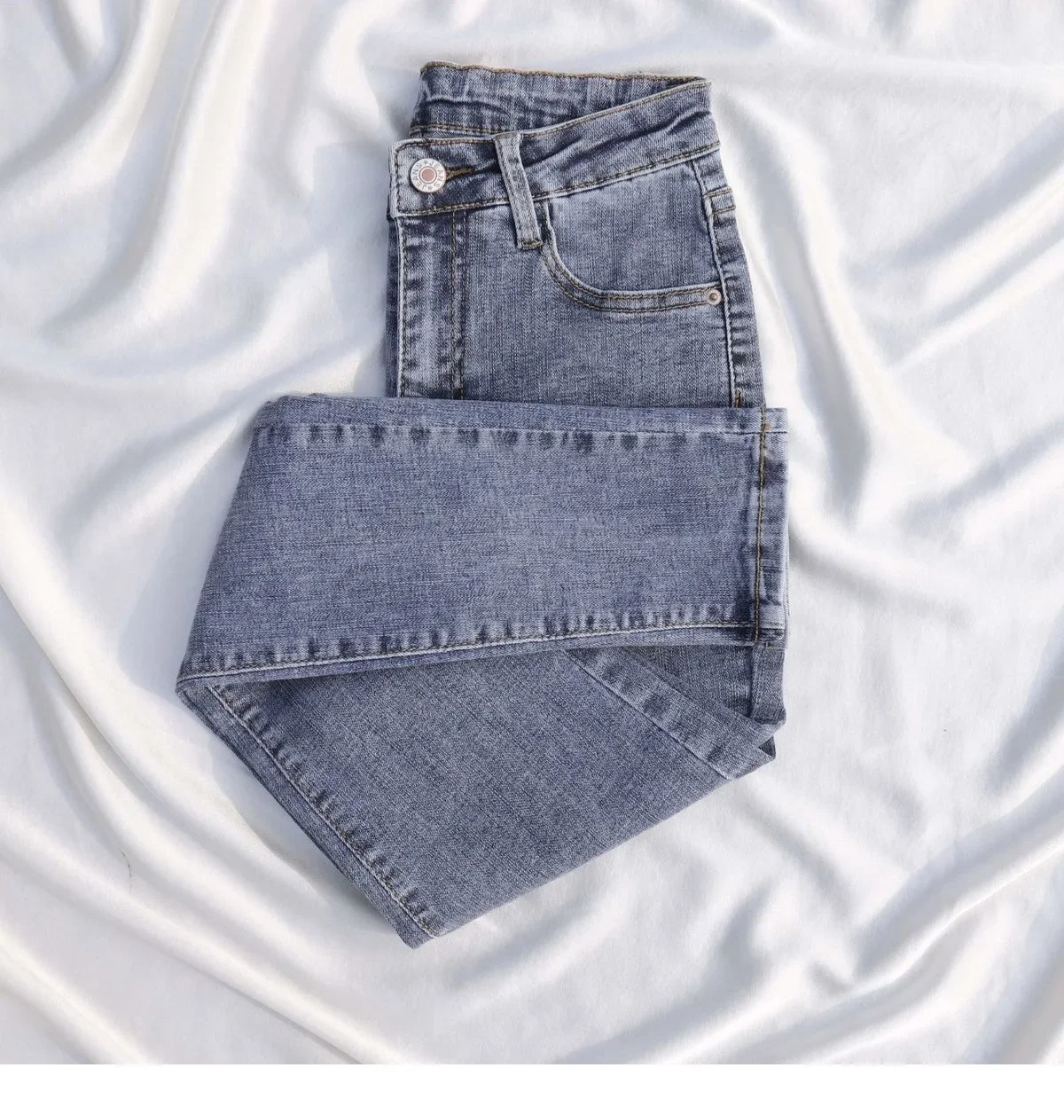 • Korean-style High-waisted Design : Embrace the latest fashion trend with these Korean-style high-waisted jeans, perfect for a chic and stylish look.